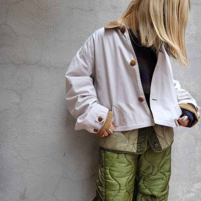 J.CREW hunting short jacket オーバーサイズの丈をショートにしました 程よくアームも広いのでニットやスウェットの上から羽織っていただけます 着用スタッフ:157㎝ 【SIZE・MATERIAL】 SIZE: 着丈 61㎝ 肩幅 51㎝ 身幅 122㎝ 袖丈 63㎝ 素材:cotton 100% ウエスト辺りに薄ら汚れと 袖口のコーディロイ折り返し部分に擦れがございます 画像参照ください 【注意事項】 ※店頭とonline shopを並行で行なっている為店頭で先にSOLDした場合はご了承下さい ※平置き採寸になりますので若干の誤差がある場合がございます ※USED品の為、返品交換・クレームなどは一切お受け出来ません。 ご質問などございましたら購入前にご連絡ください よろしくお願い致します