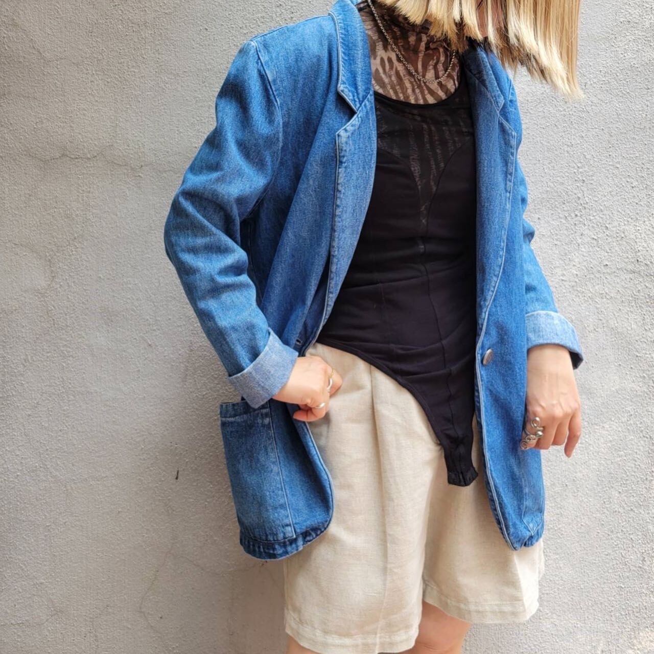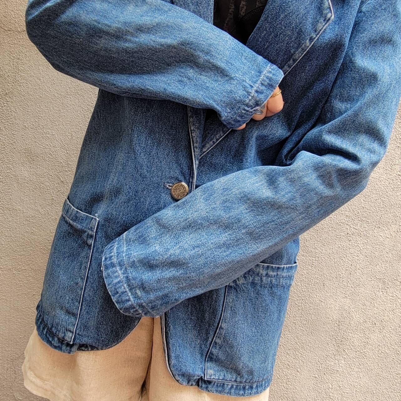 裏地無しの一つボタンでラフな感じで羽織っていただけます