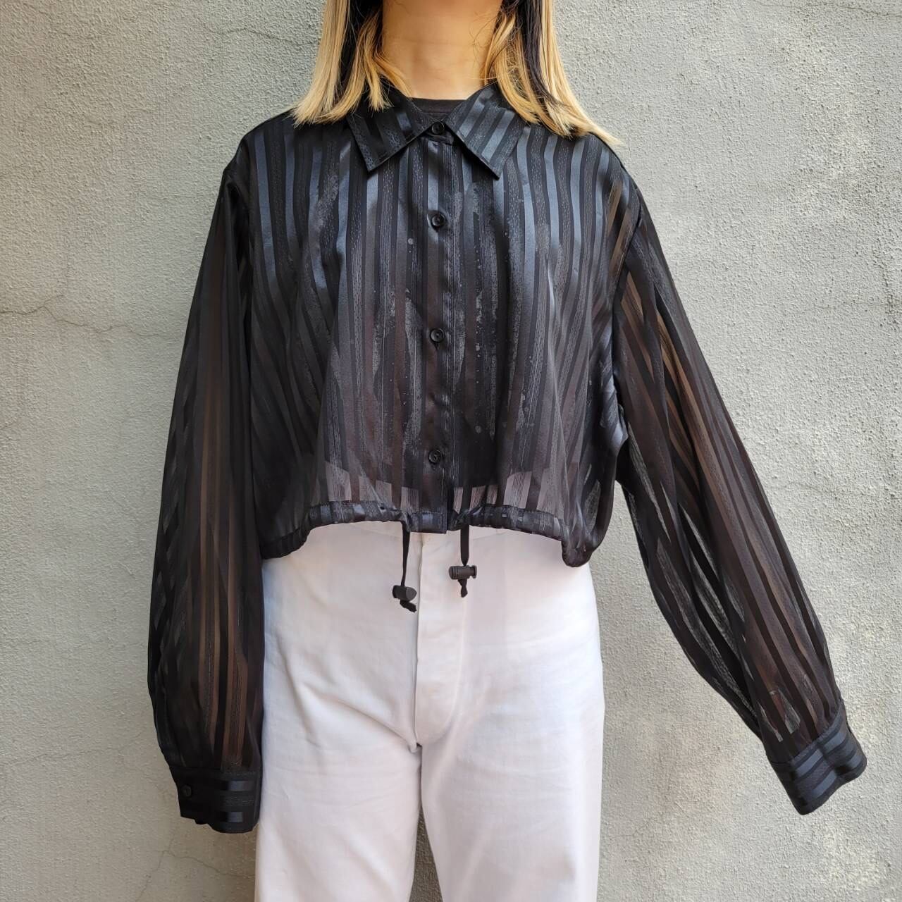 オーバーサイズのシースルーブラウスをショート丈にしました