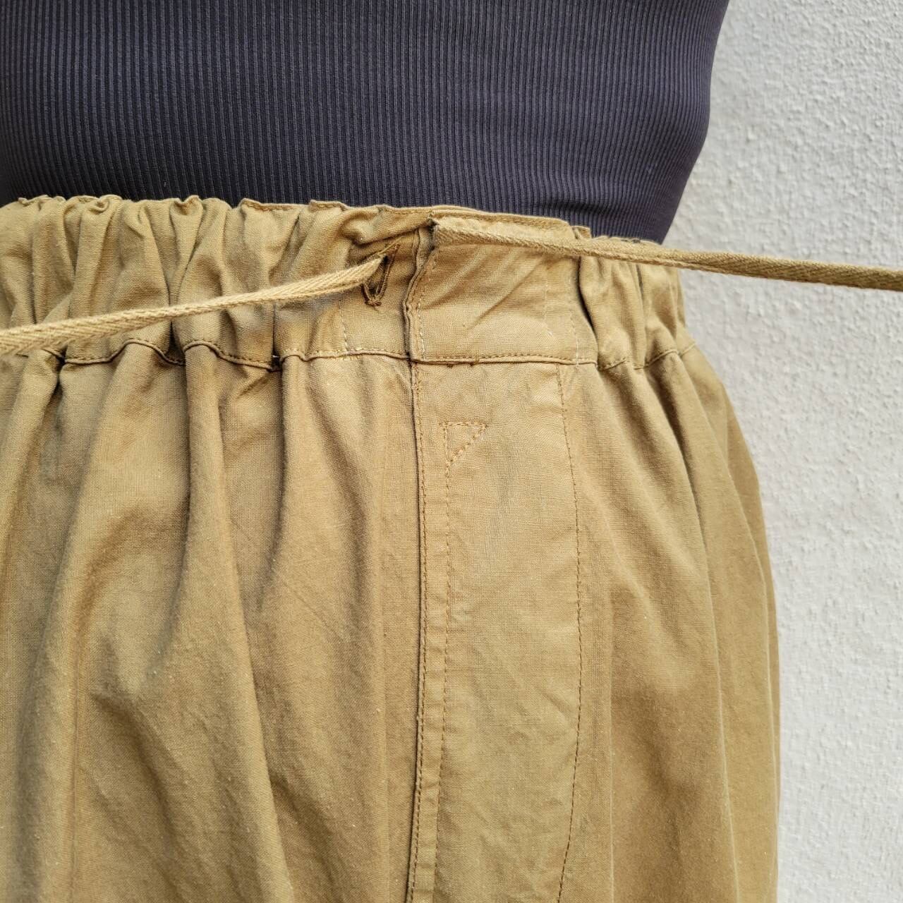 着用時ウエストを一折するとお尻まわりが少しスッキリしてみえます