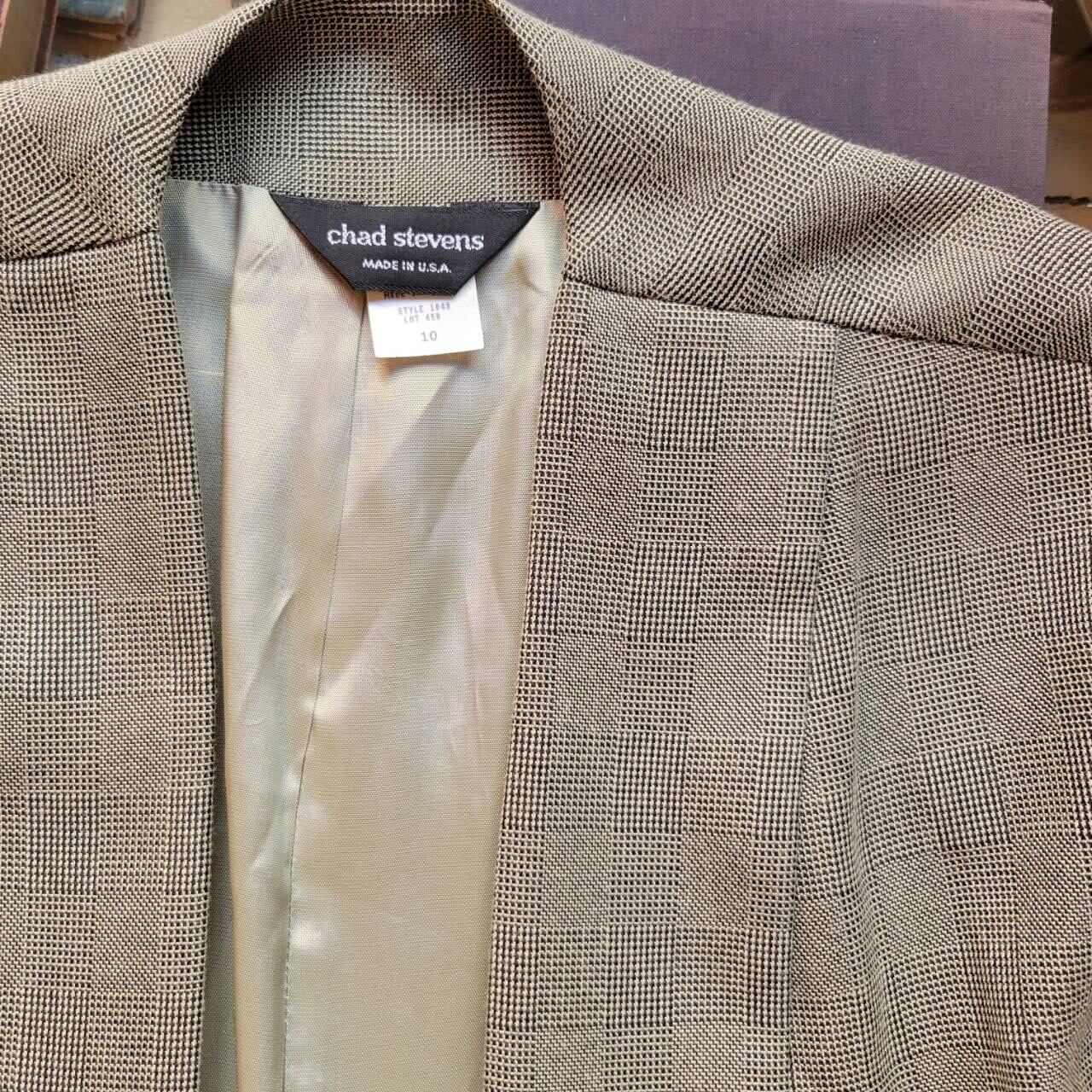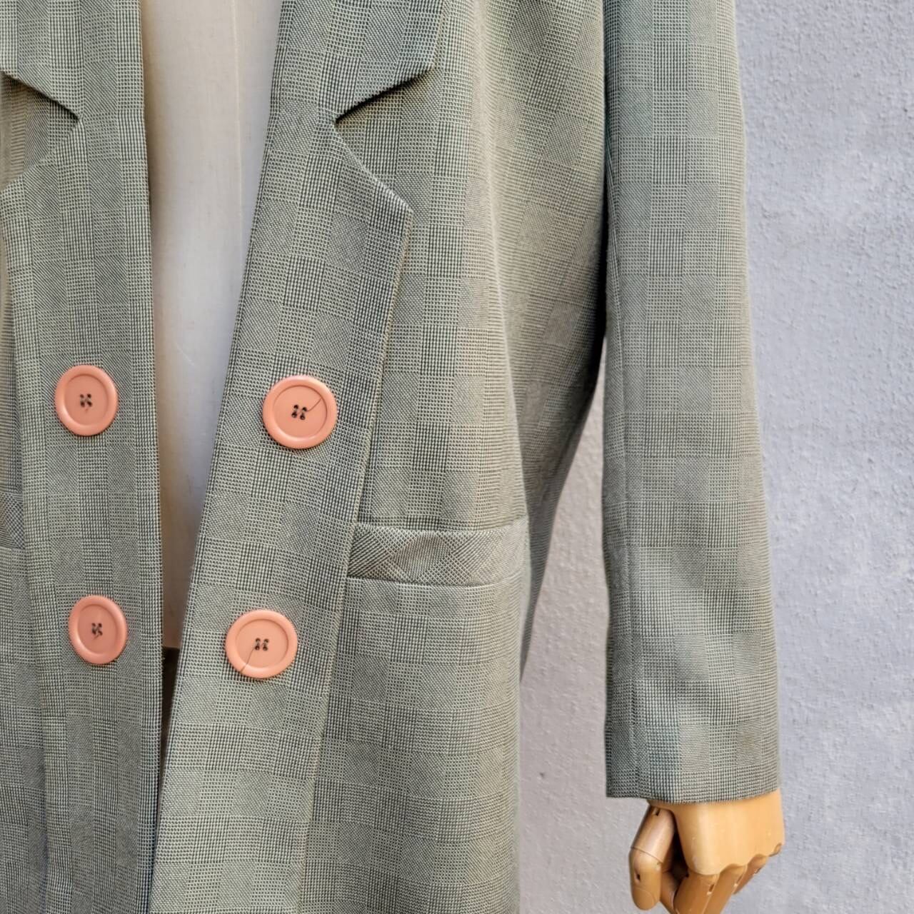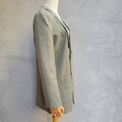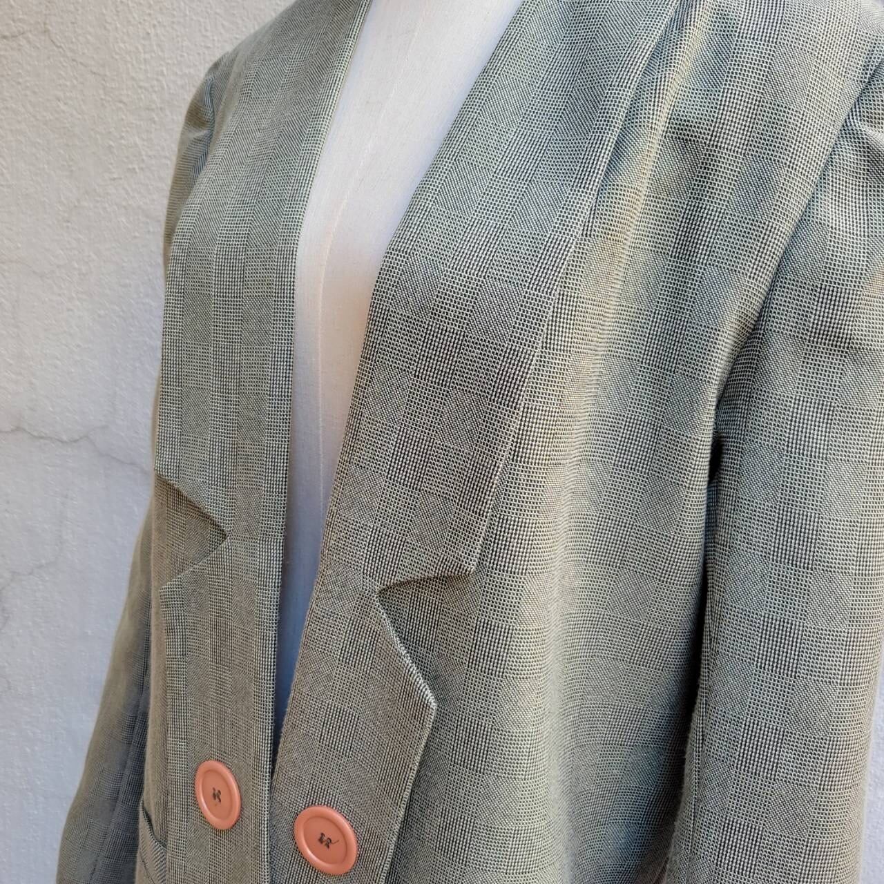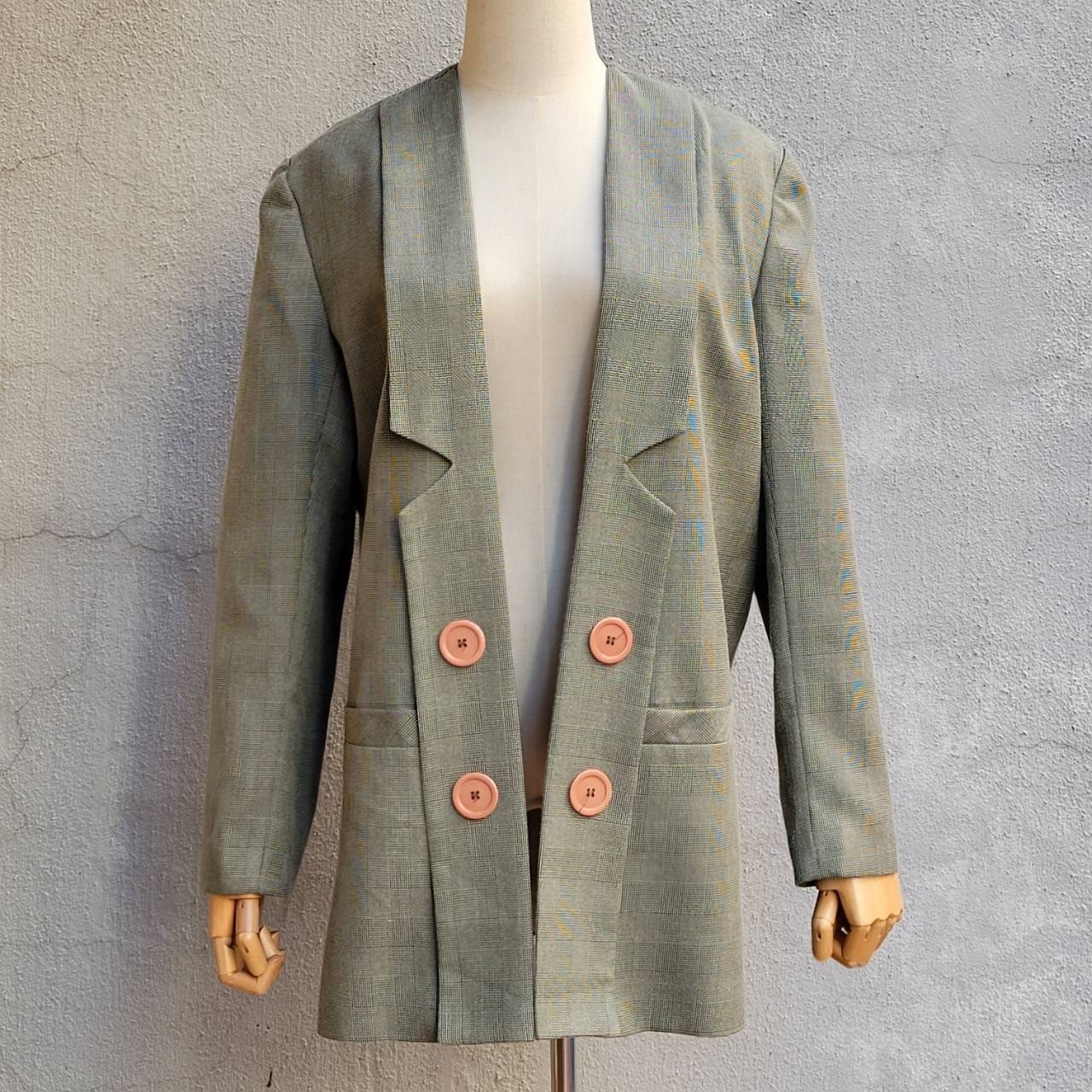 上品な雰囲気で、シンプルに着こなせるノーカラーデザインのジャケットです。細かいチェック柄が特徴で、しっとりとした質感が魅力です。
