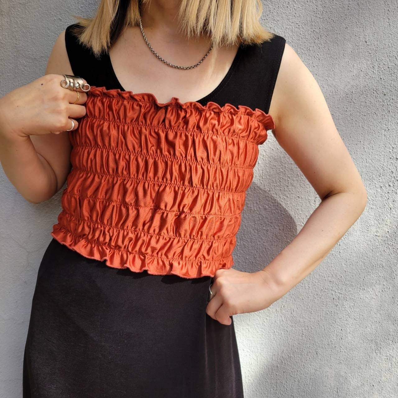 テロっとした素材感で伸縮性もあってレイヤードしやすいです