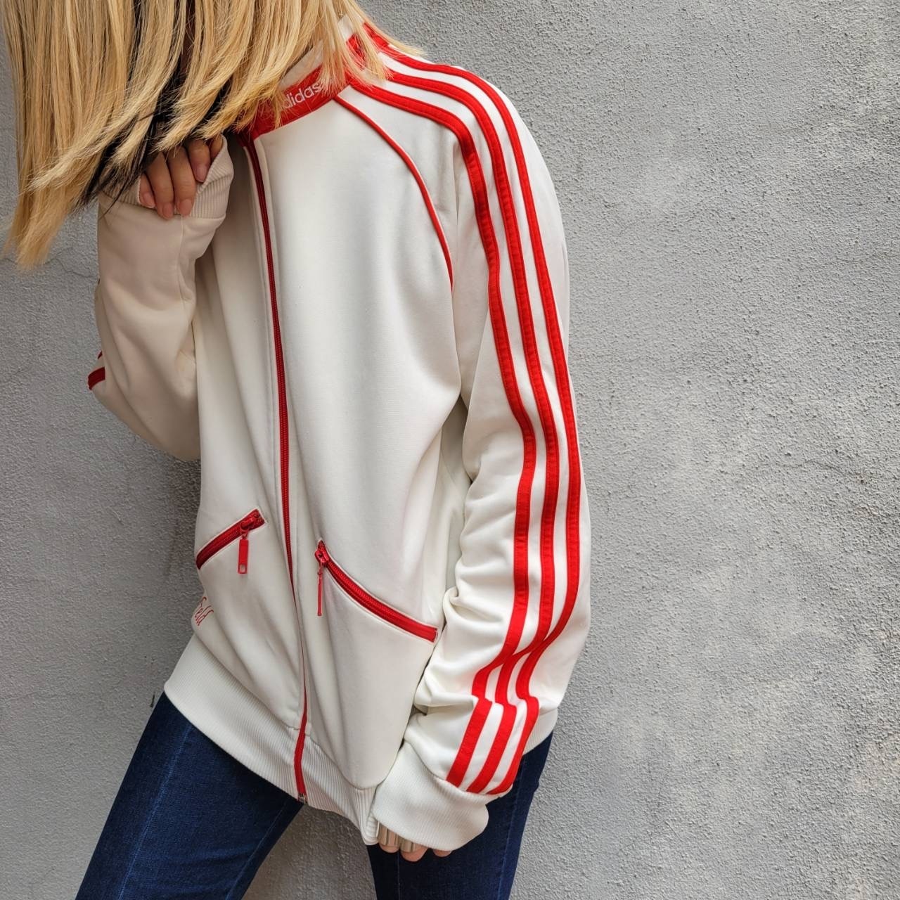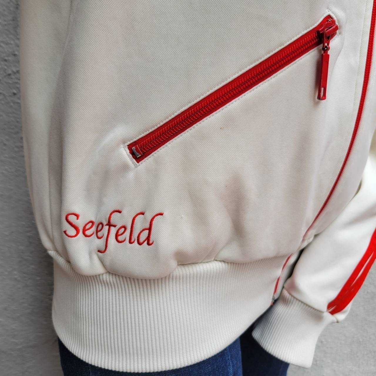 首元にかけての3本ラインが独特なデザインで、はっきりした色合いで着こなしのアクセントにお勧めです