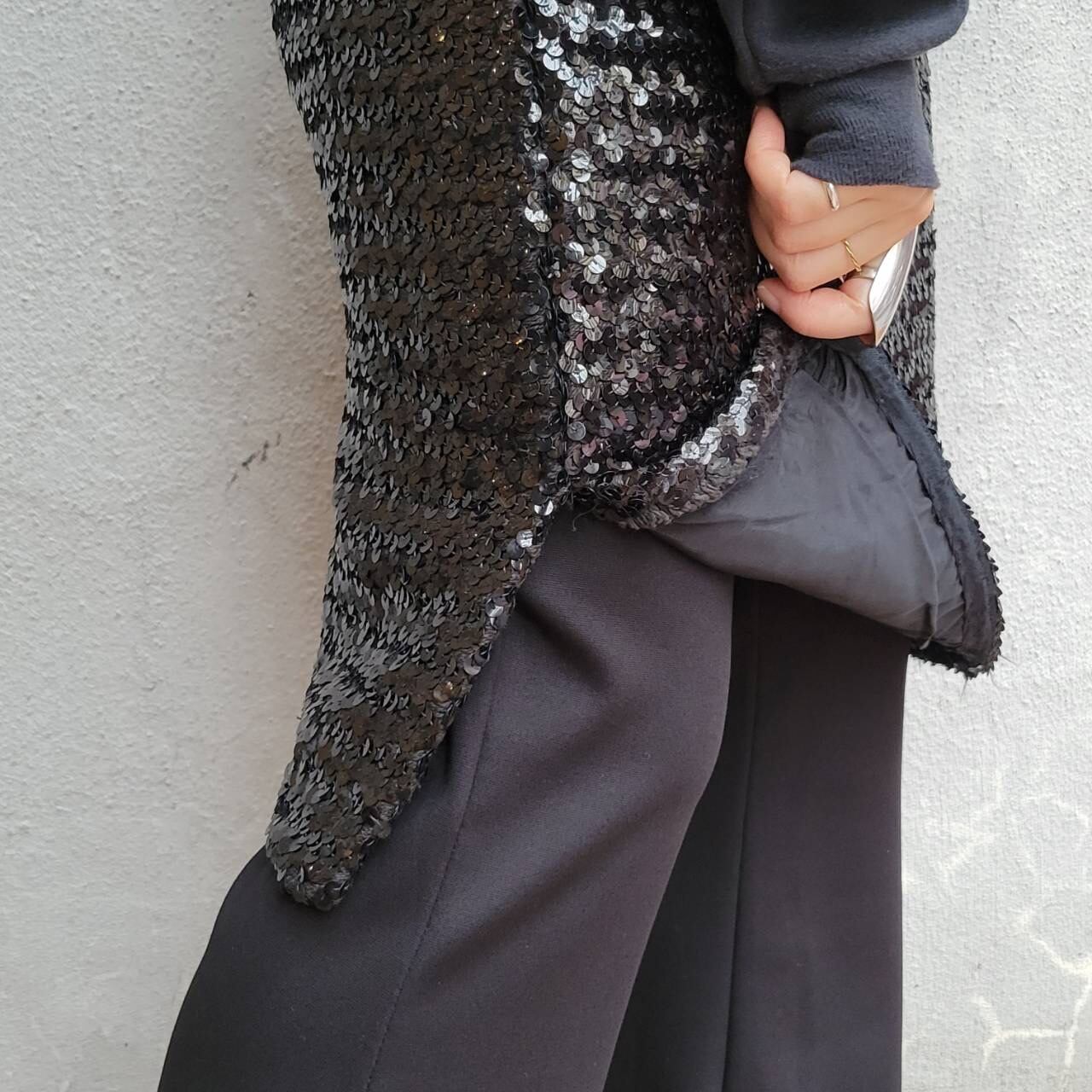 ハイウエストデザインの50‘s スパンコールスカートです!美しいスパンコールが施され、きらびやかな印象を与えます。両サイドにはスリットが入っているので、パンツとのレイヤードスタイルにお勧めです