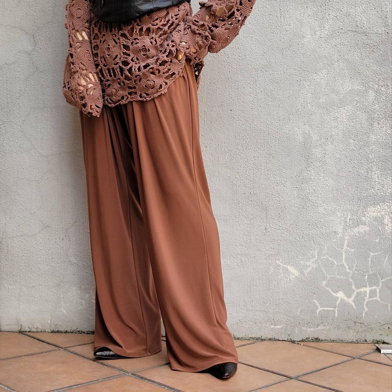 spandex素材を使用しており、楽な着用感ながらも美しいシルエットを実現しました。落ち感が最高で、カジュアルにもエレガントにもコーディネートしやすい一着です。