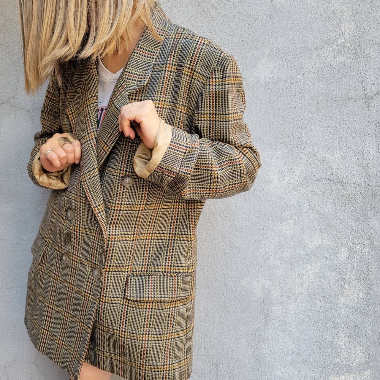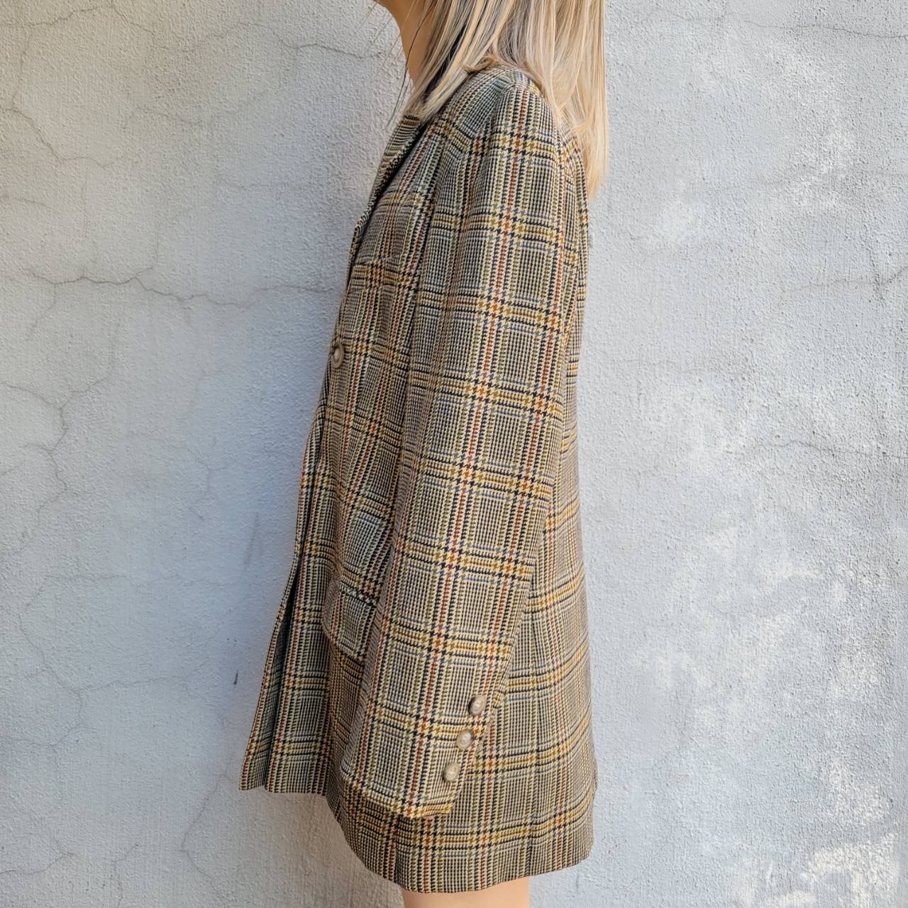 ウール100%で仕立てられたチェックダブルジャケットは、薄手ながらも暖かさをしっかり保ってくれます。