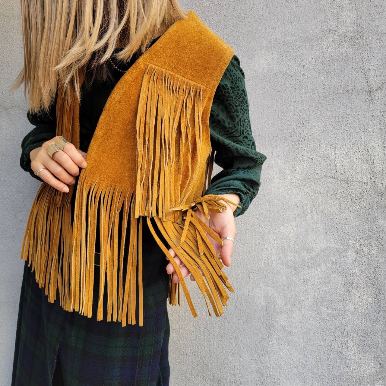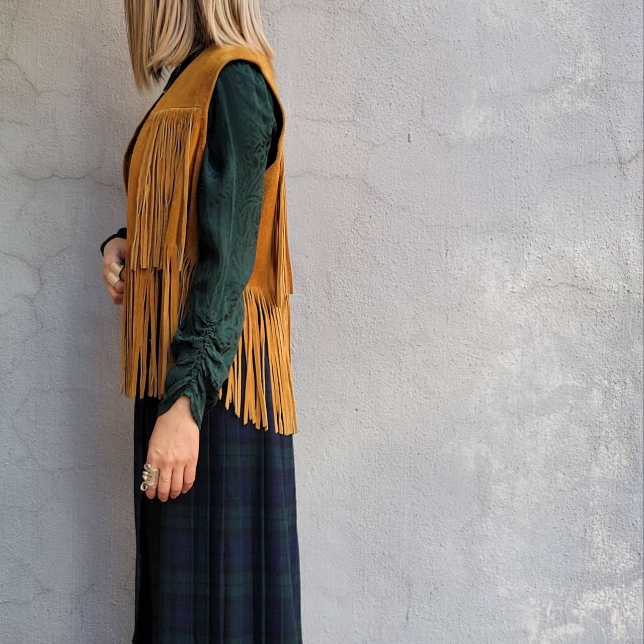 2段フリンジが揺れることで、動くたびに動きが加わり、個性的なスタイルを演出します。