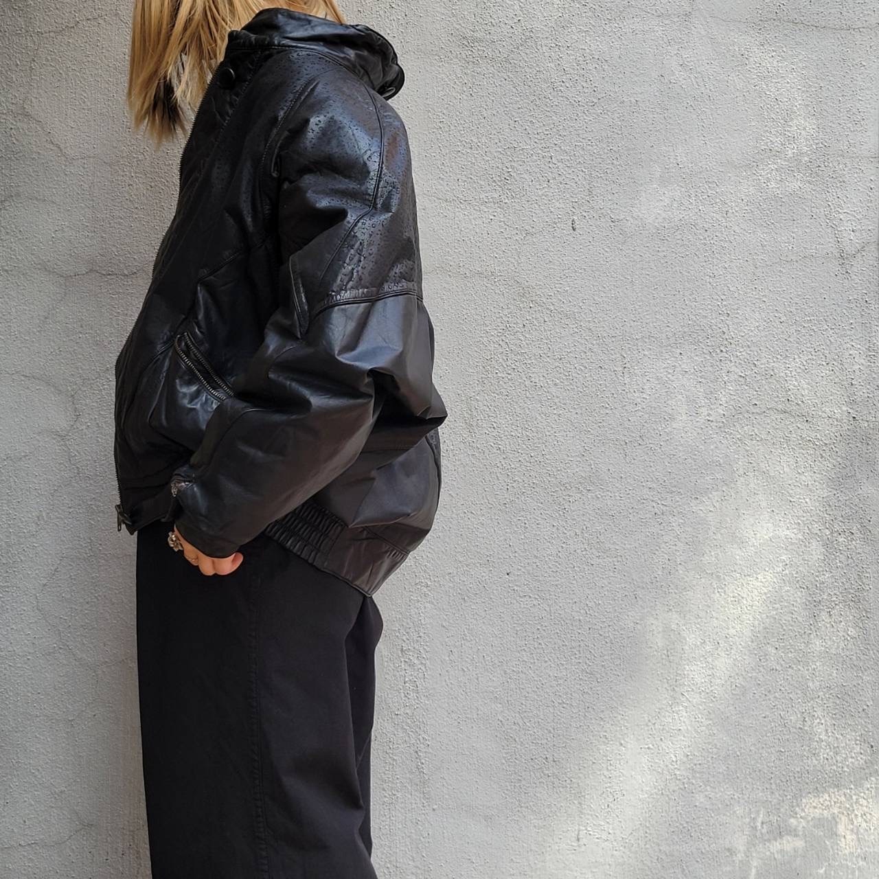 ドルマンスリーブのデザインが特徴的なレザーブルゾンです。