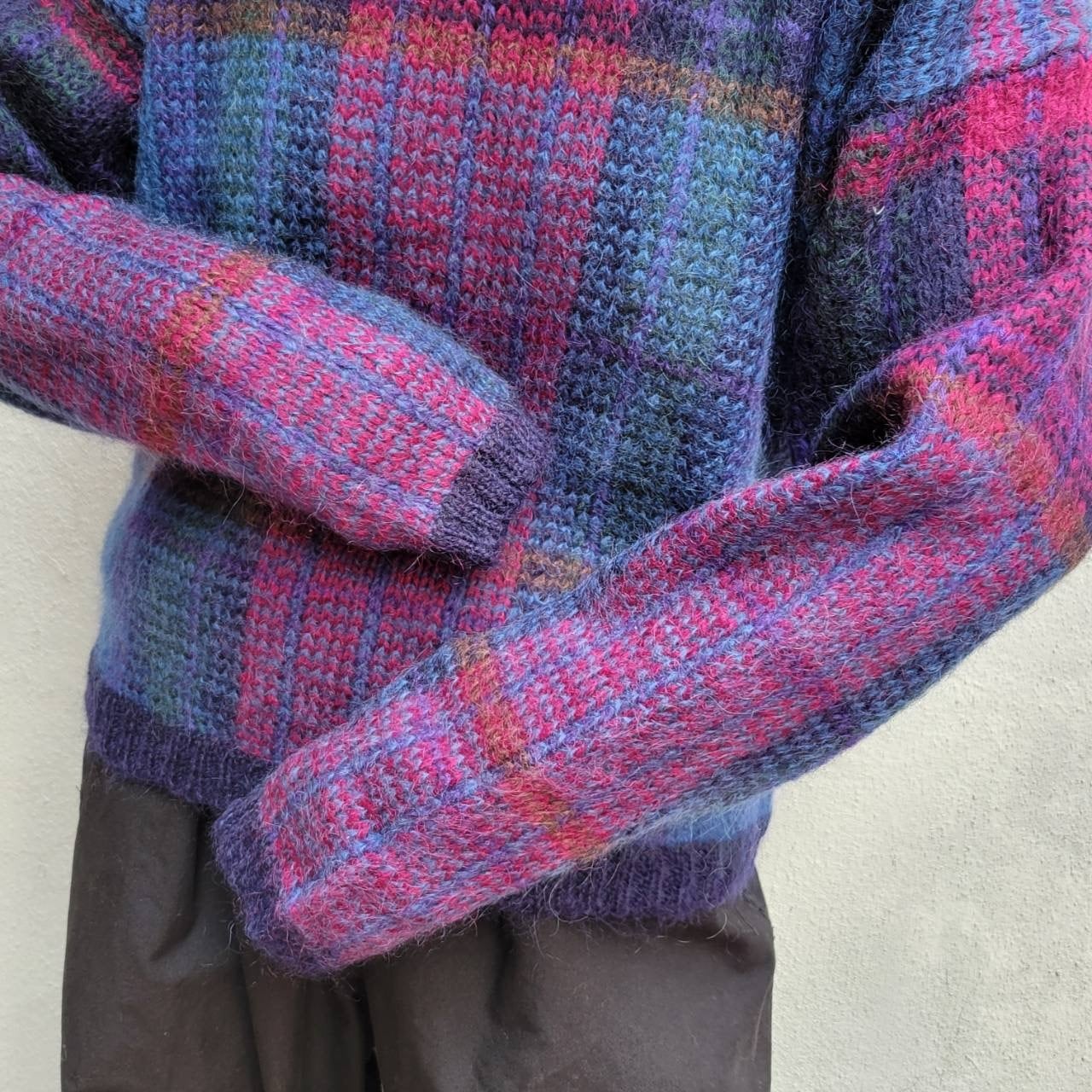 柔らかく暖かなモヘア素材を使用したチェックモヘアニットです。