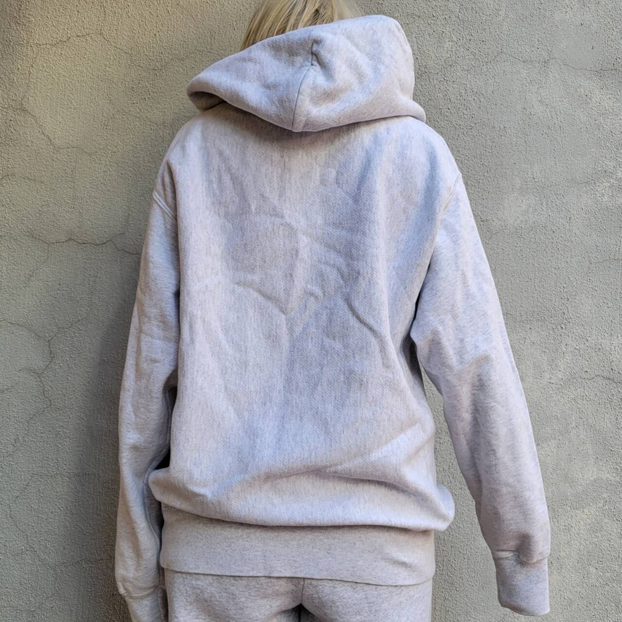 ざっくりとした首元カットが特徴のchampionリバースウィーブフーディは、絶妙なMEDIUMサイズで大人のカジュアルスタイルにぴったりです。