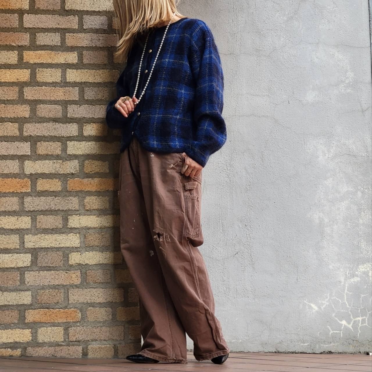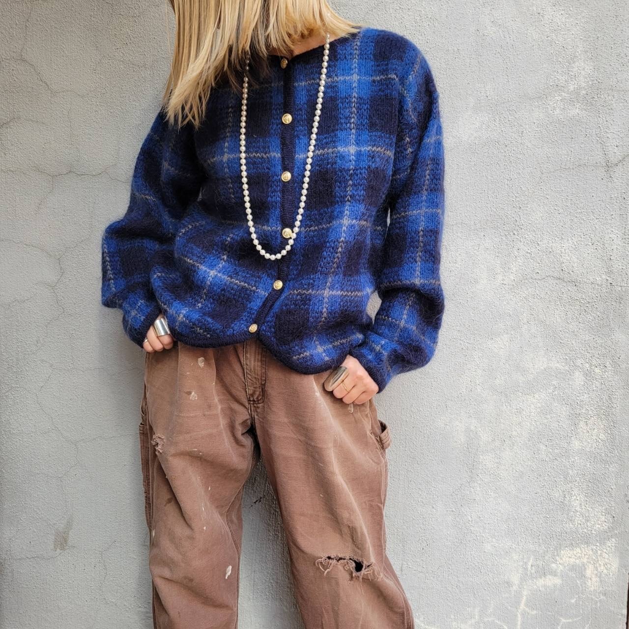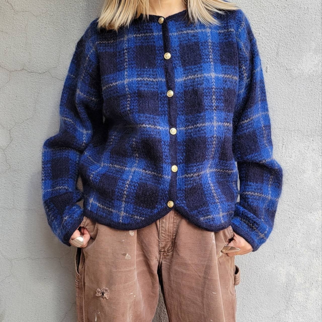 チェックモヘアカーディガン