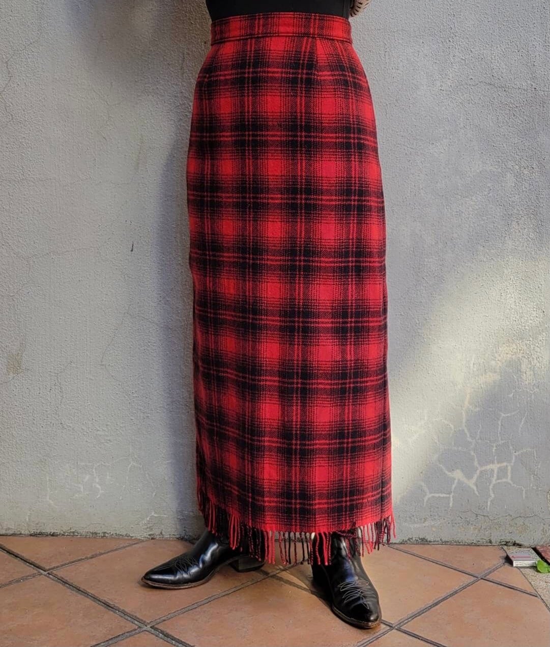 かわいい赤チェックが目を引くWOOL RICHチェックフリンジスカートです!