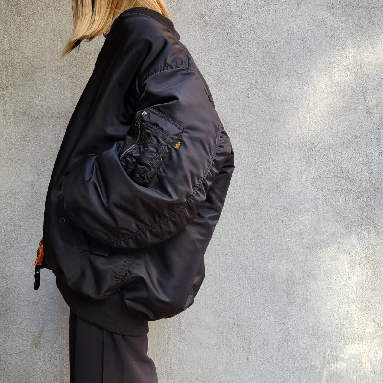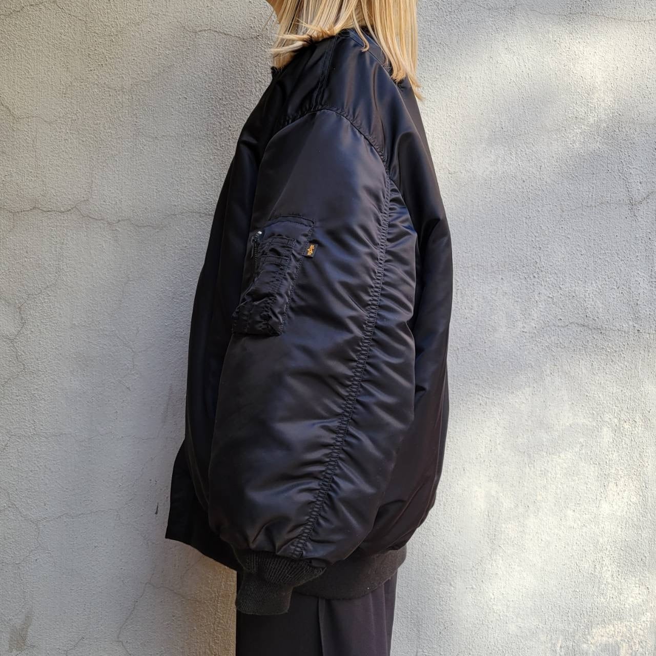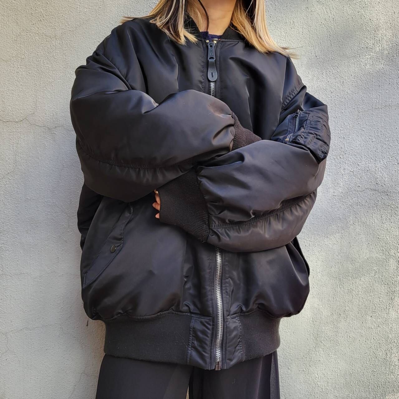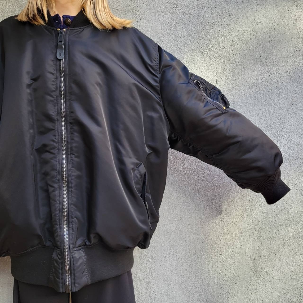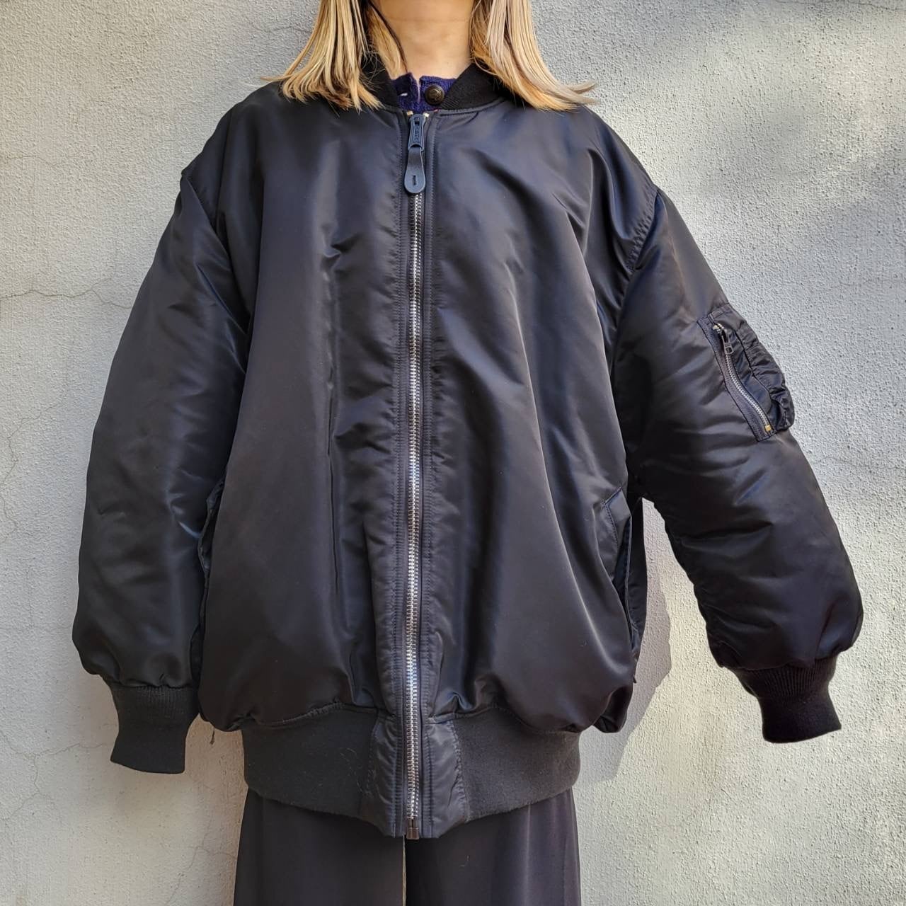 日本ではあまり出会わないサイズ感のMA-1ジャケットです。