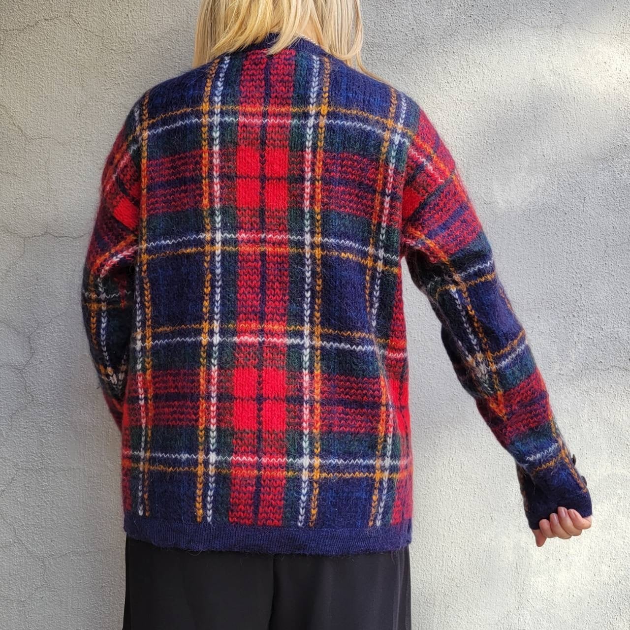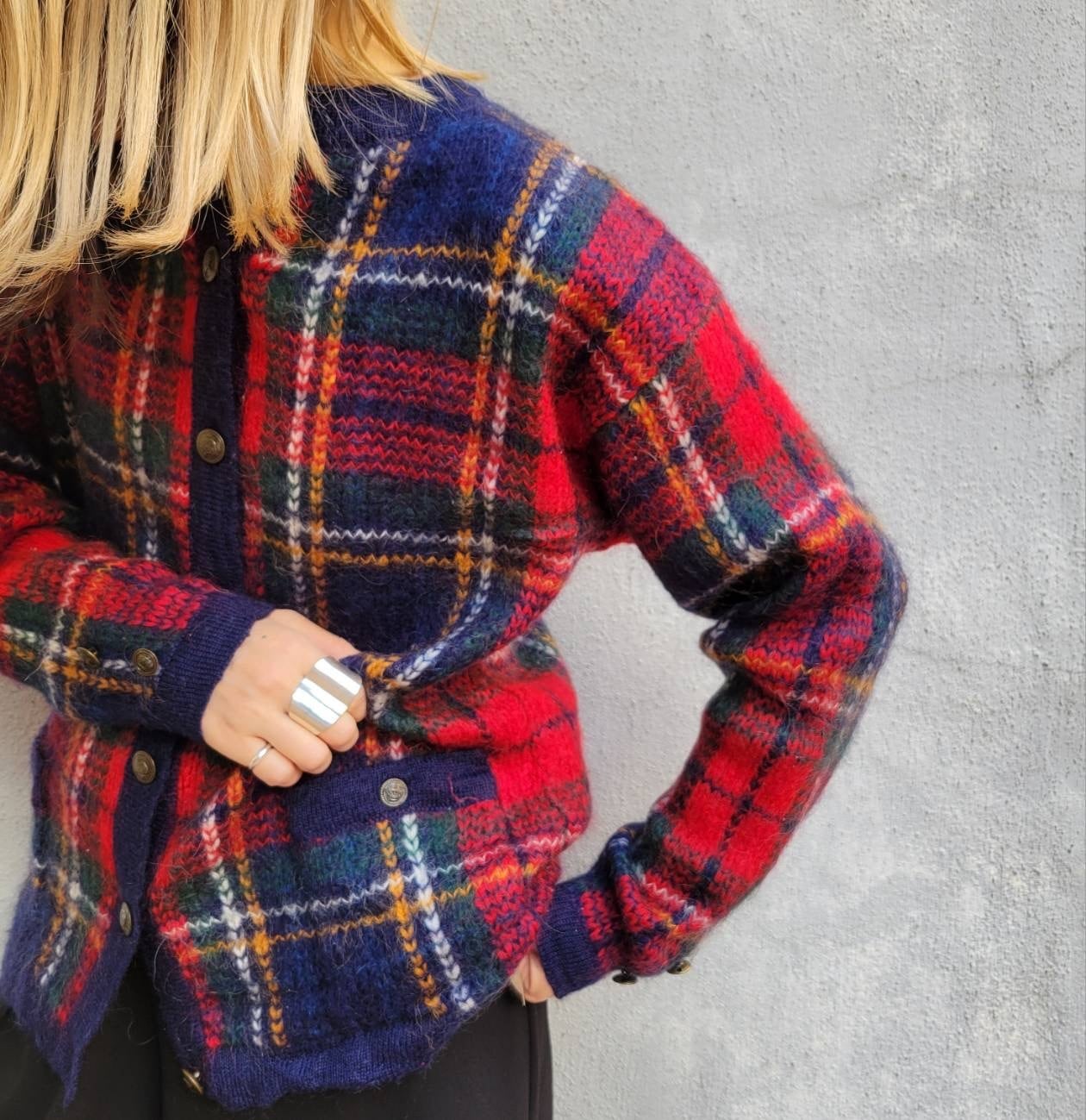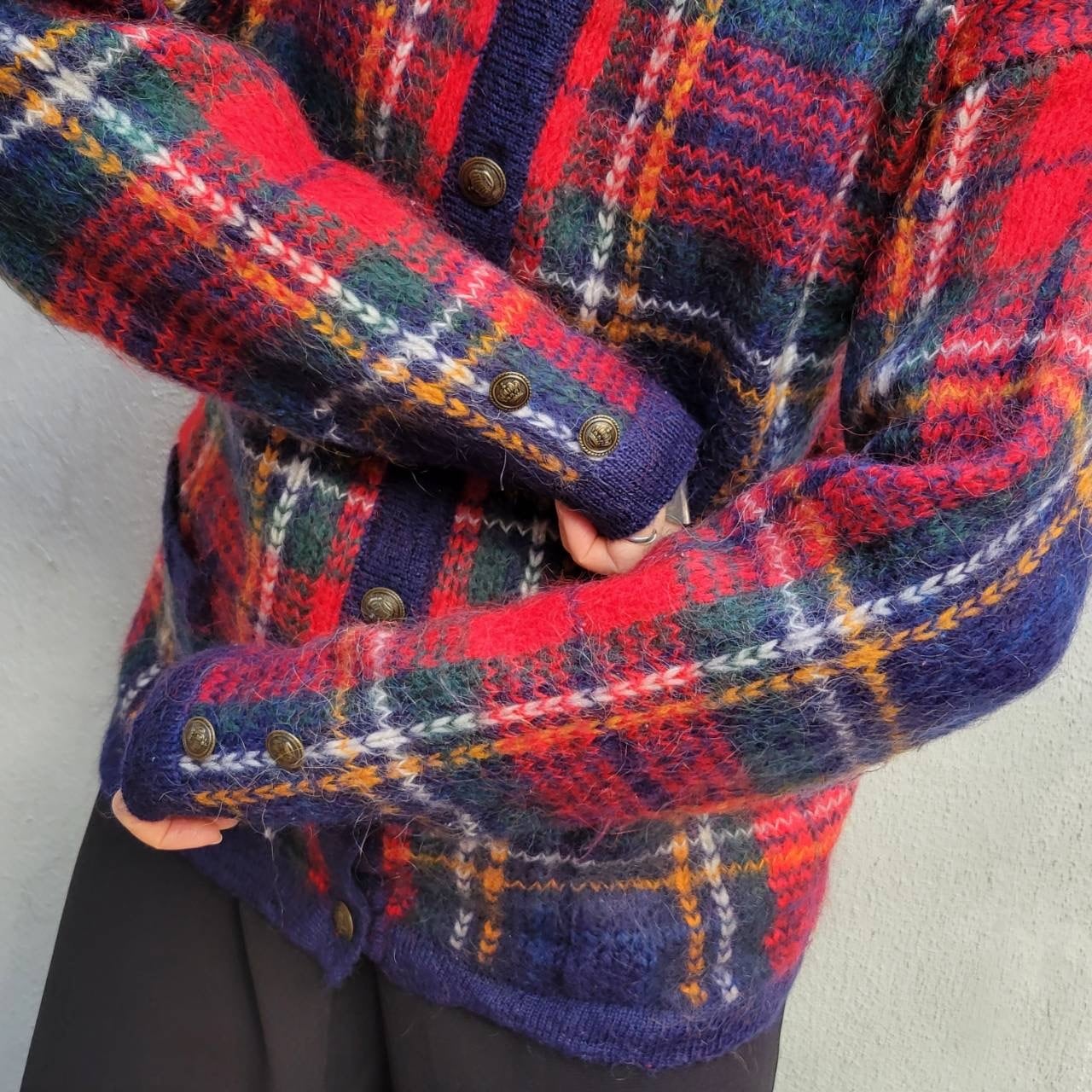 赤チェックがかわいいチェックモヘアニットカーディガンです!