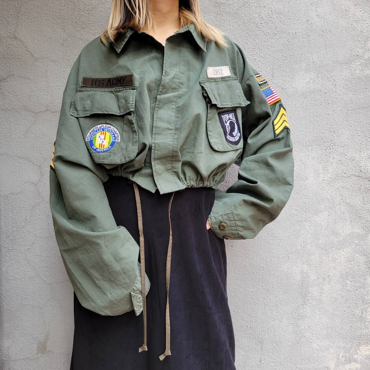 オーバーサイズの着丈をショートに仕上げた、トレンド感満載のミリタリーショートジャケットです!
