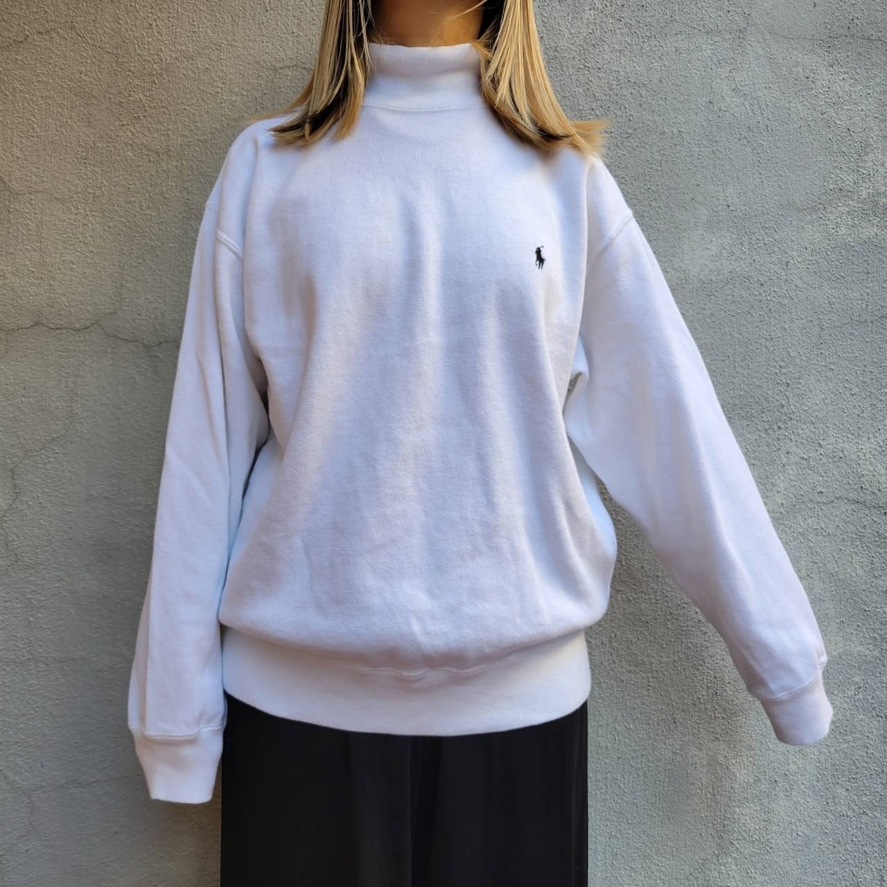 高めのネックでしっかり地厚めな素材感のトップスになります