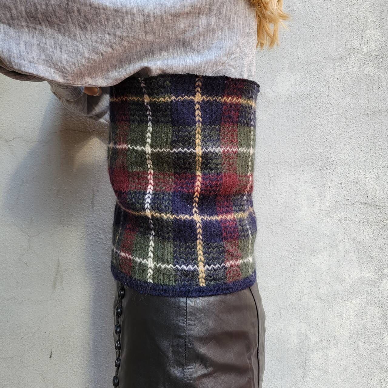 ニットなので伸縮性があってスウェットの上から楽に着用できます