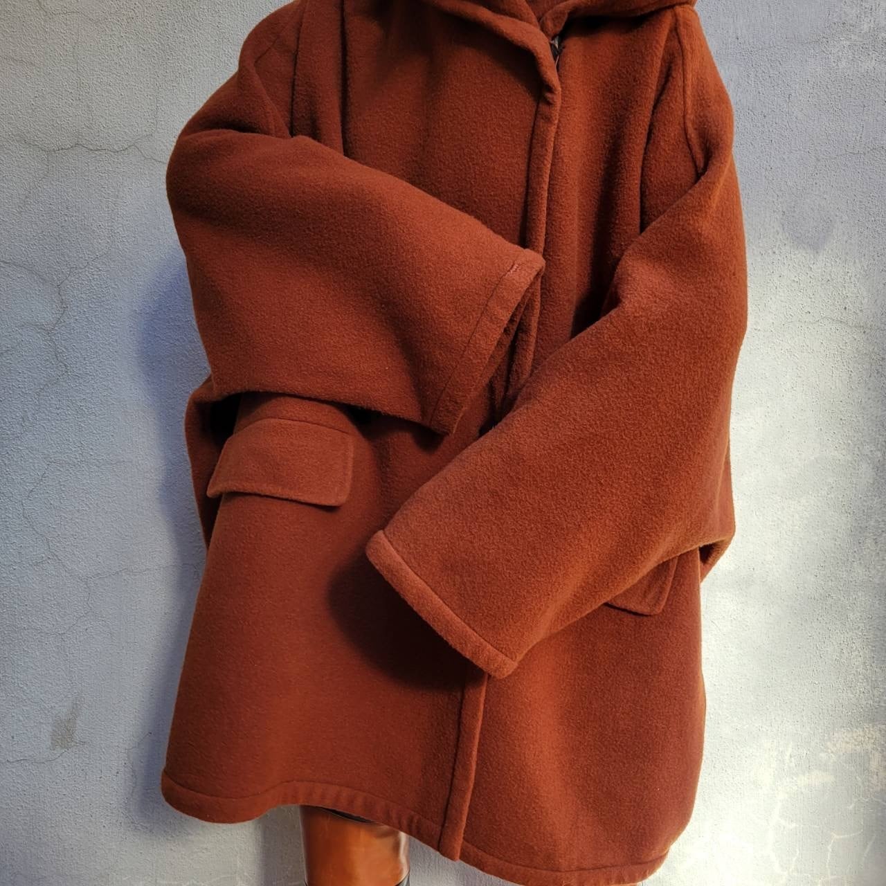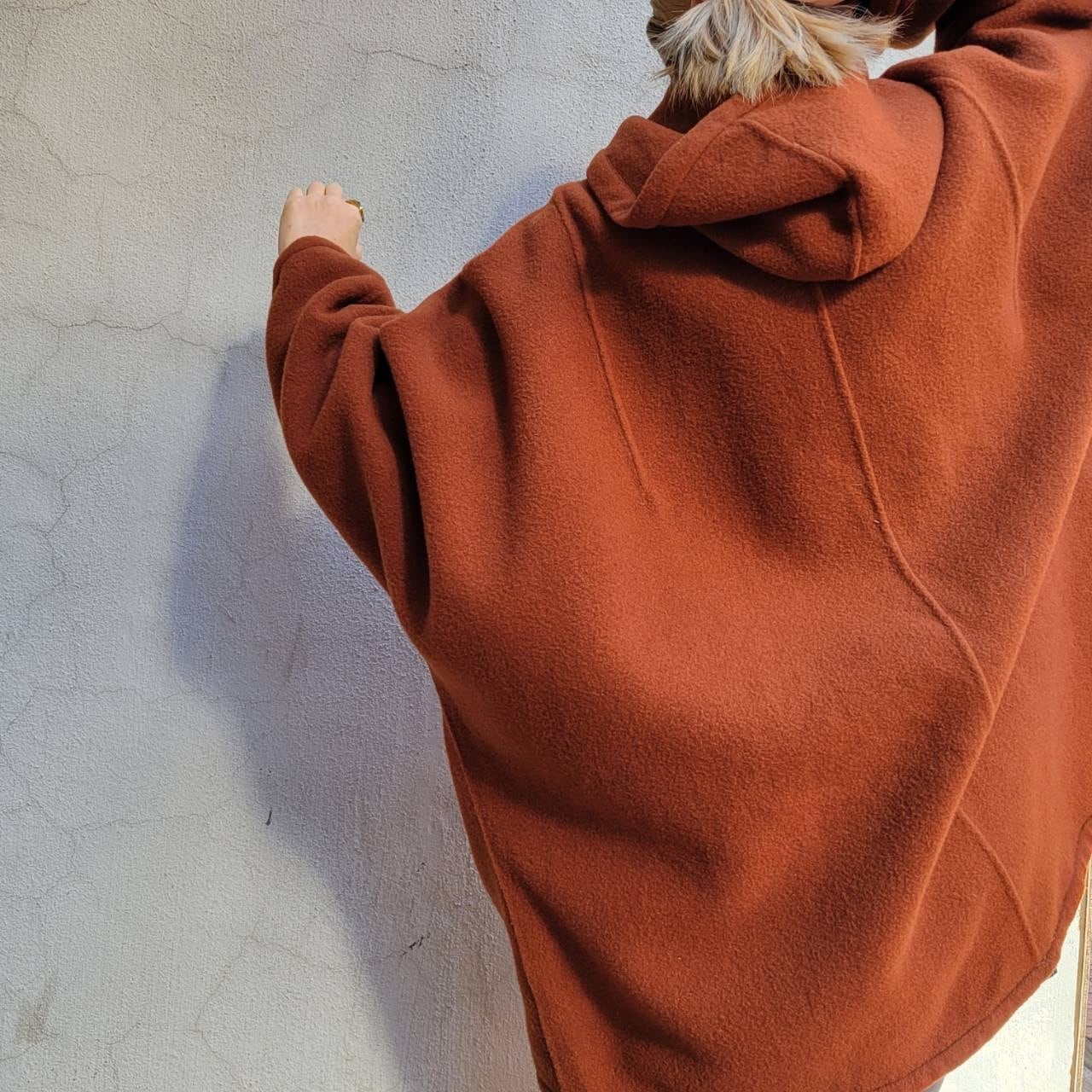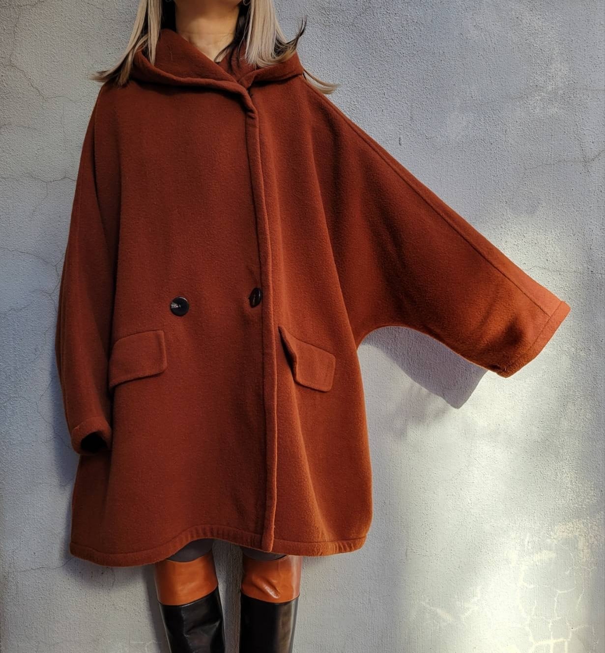 ドルマンスリーブのオーバーシルエットが特徴的なウールデザインコートです!