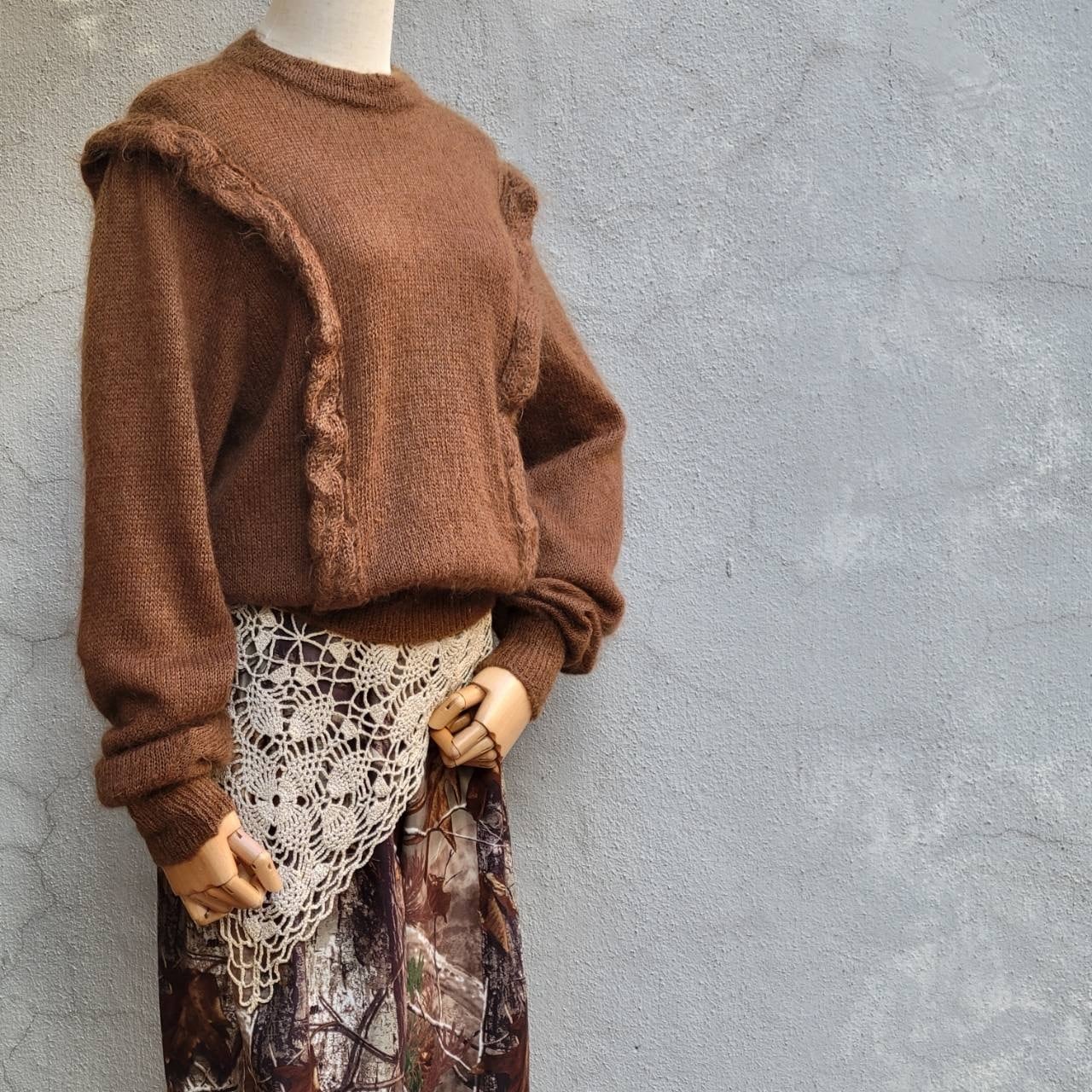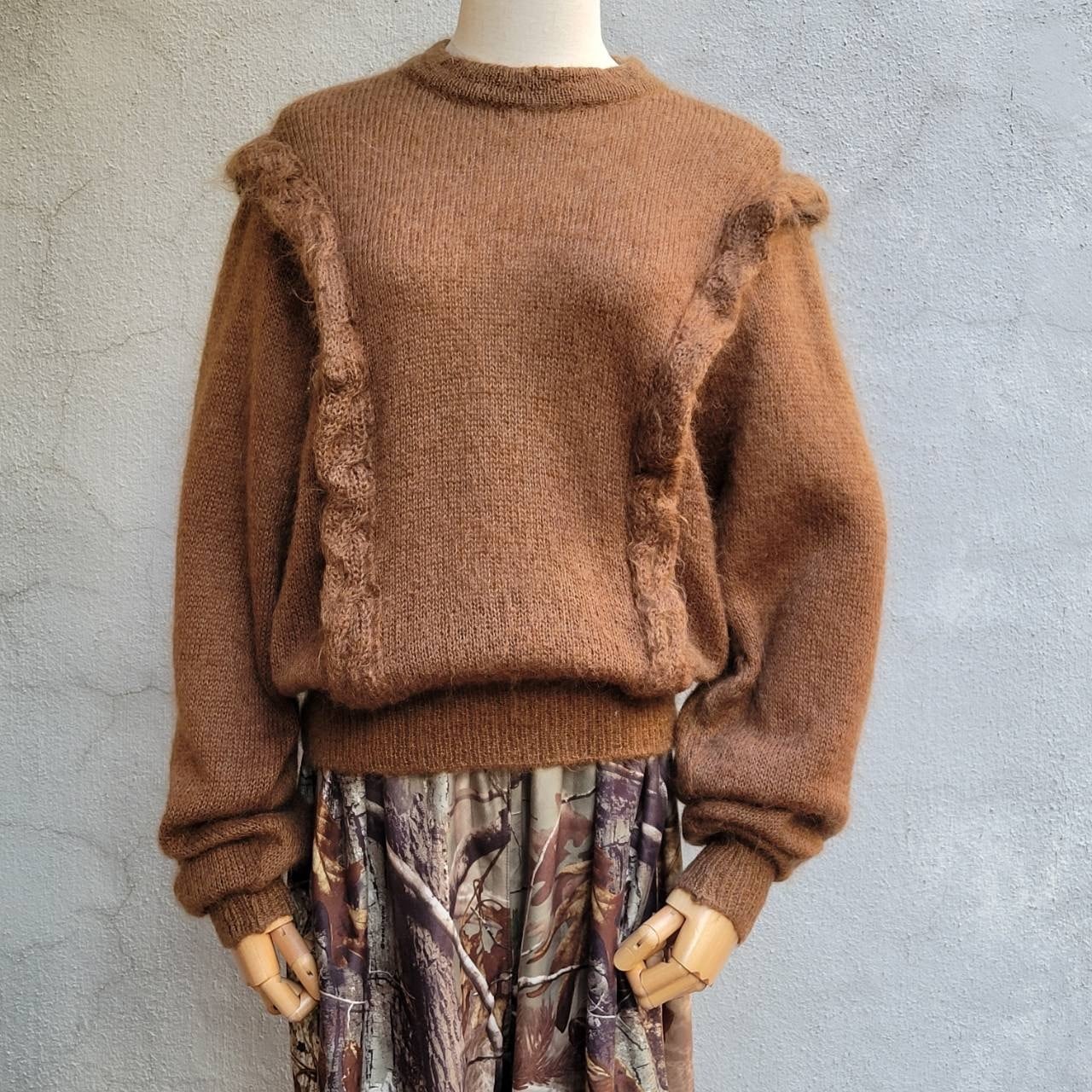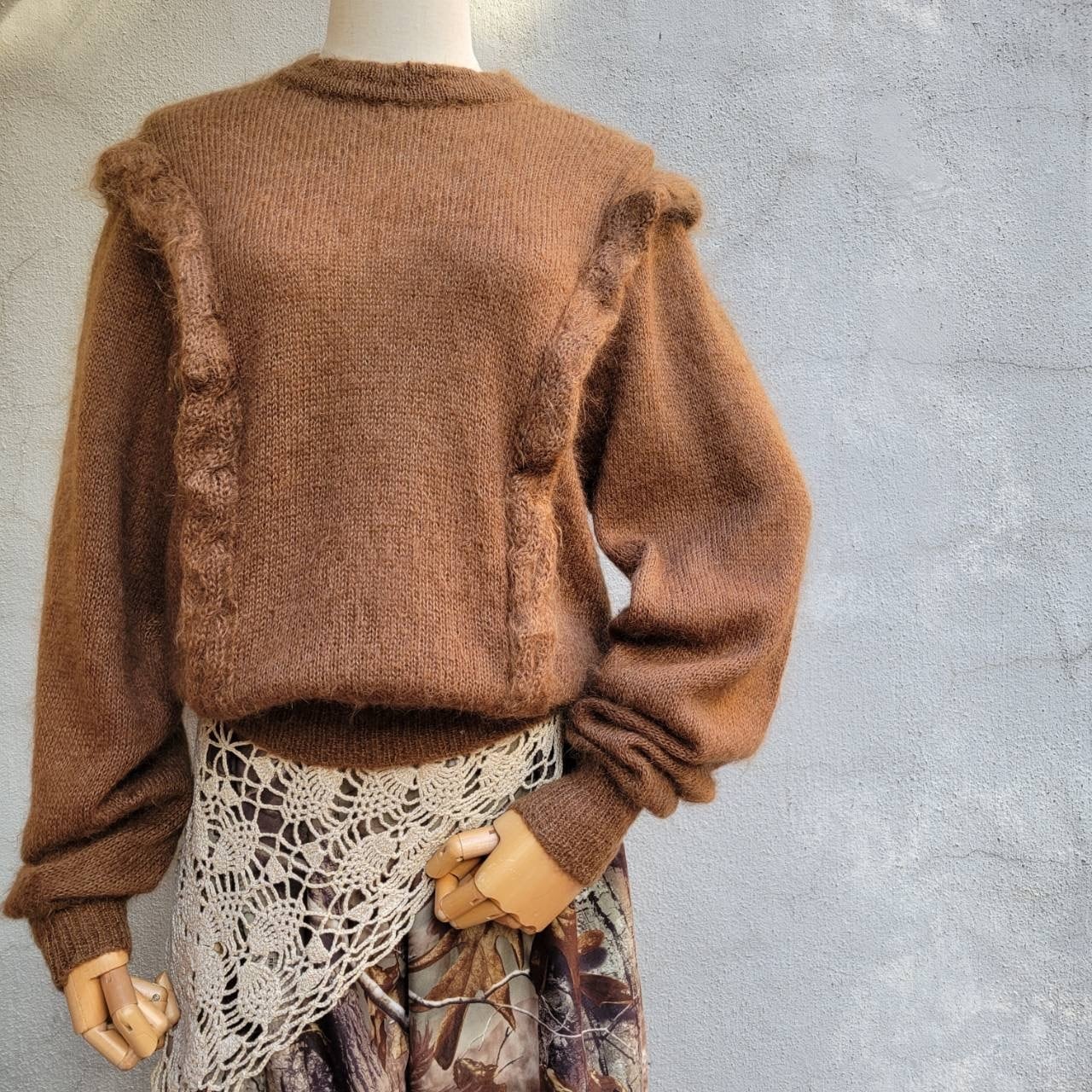 ふわふわのモヘアニットで、フリルの縦ラインが可愛らしさを引き立てます!