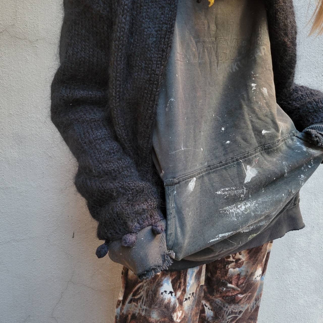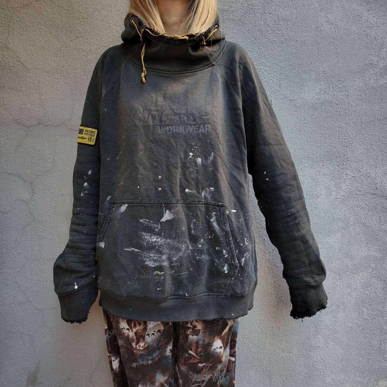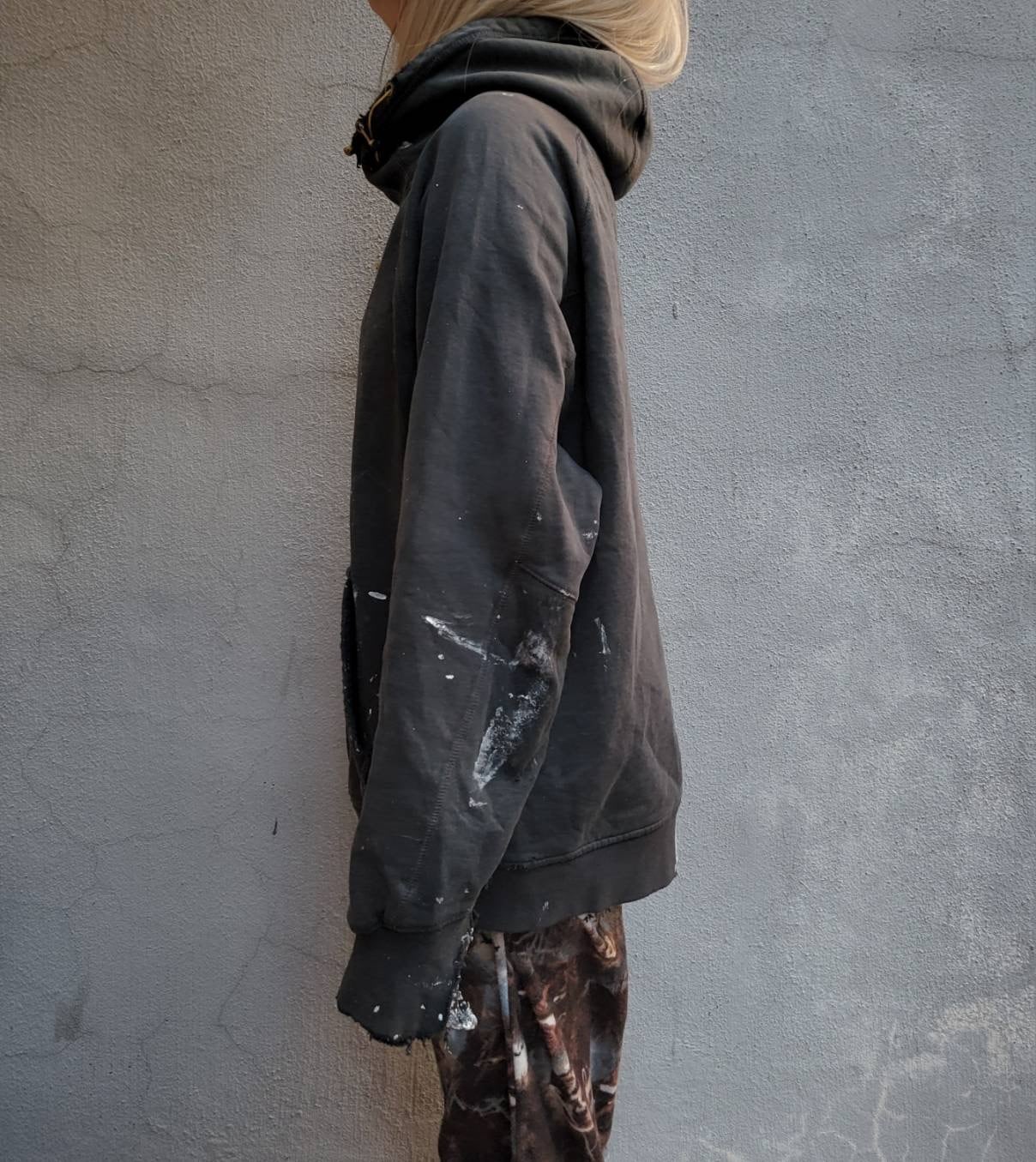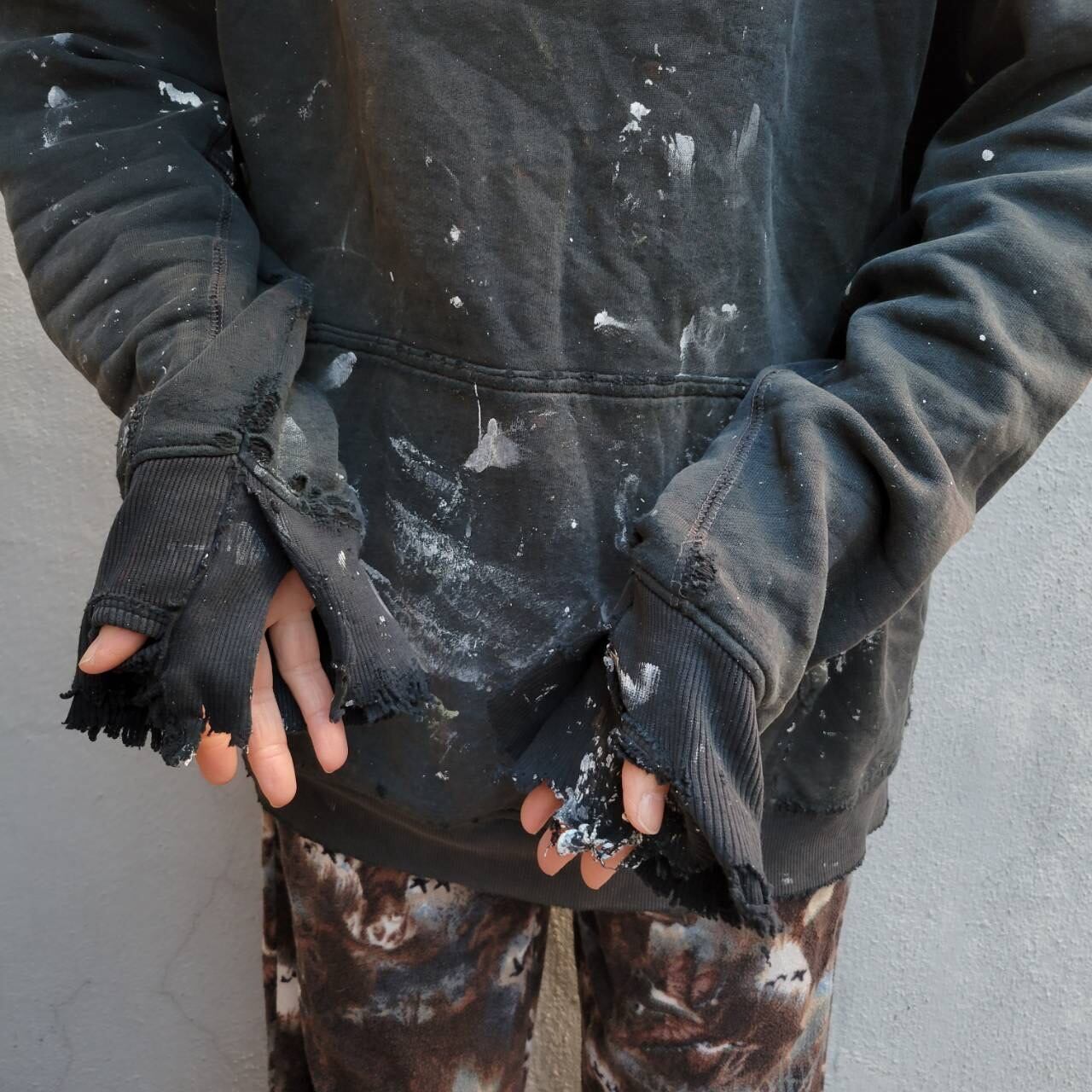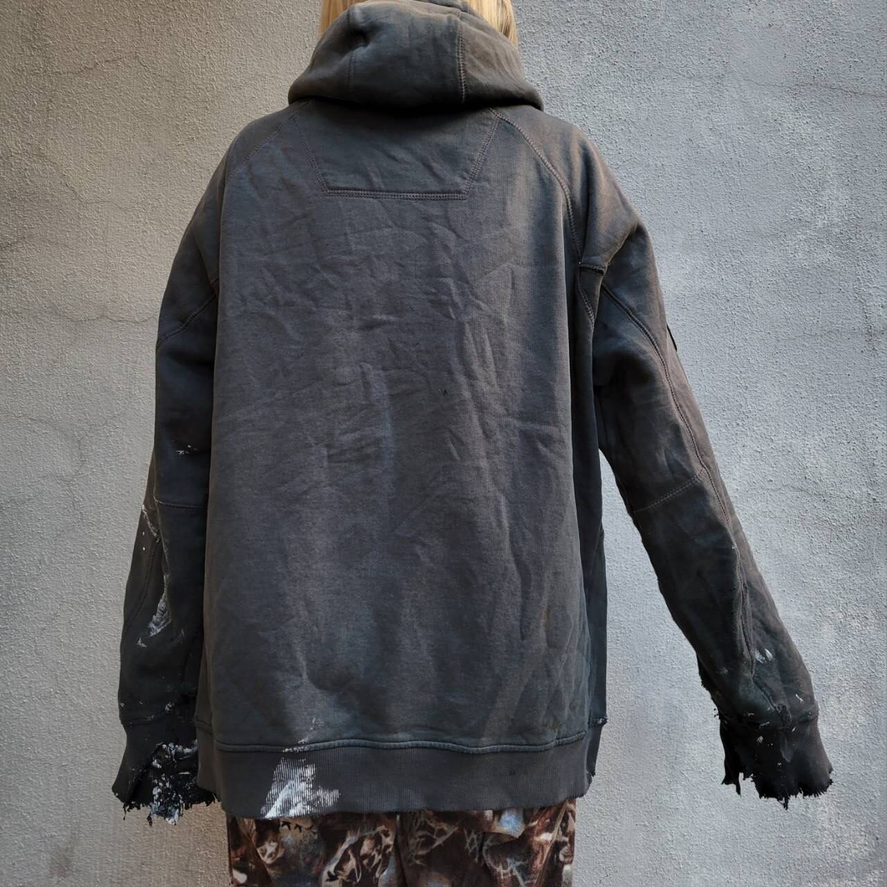 クラッシュ具合とペインティングが印象的なCrash hoodieは、着こなしのアクセントとして非常におすすめの一枚です