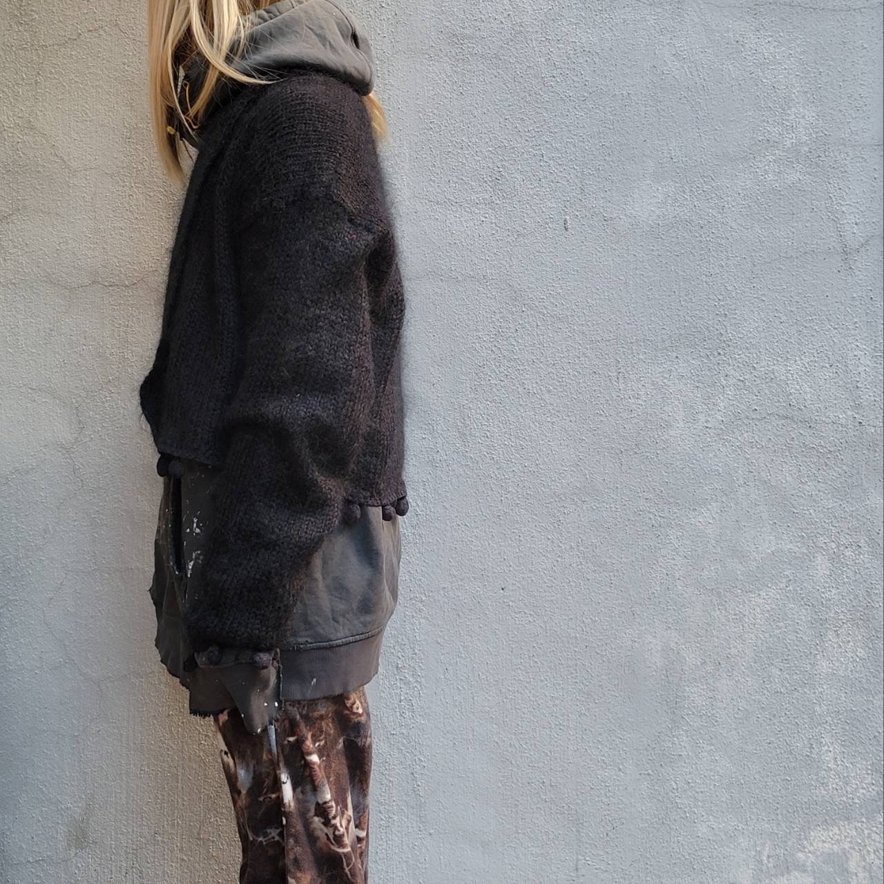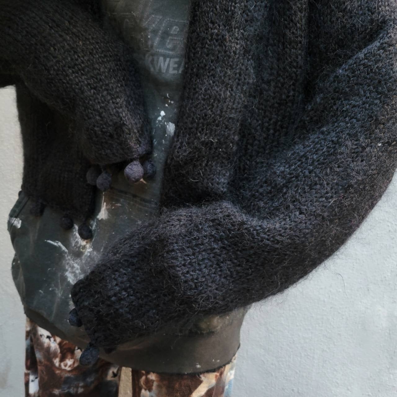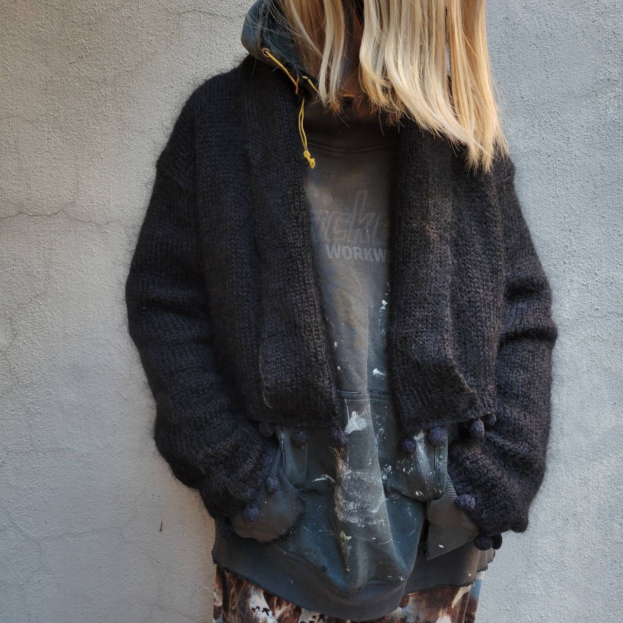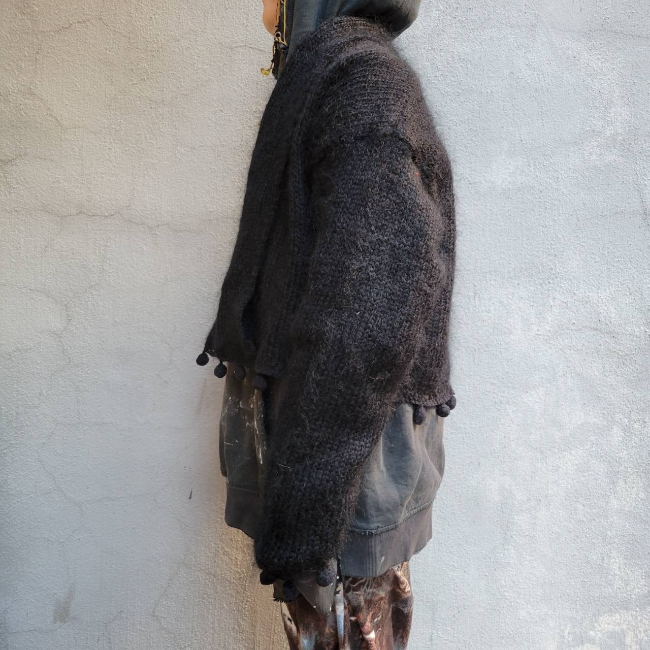 ふわふわとしたモヘアニットの袖口と裾に施されたボンボンが可愛らしさを引き立てます!