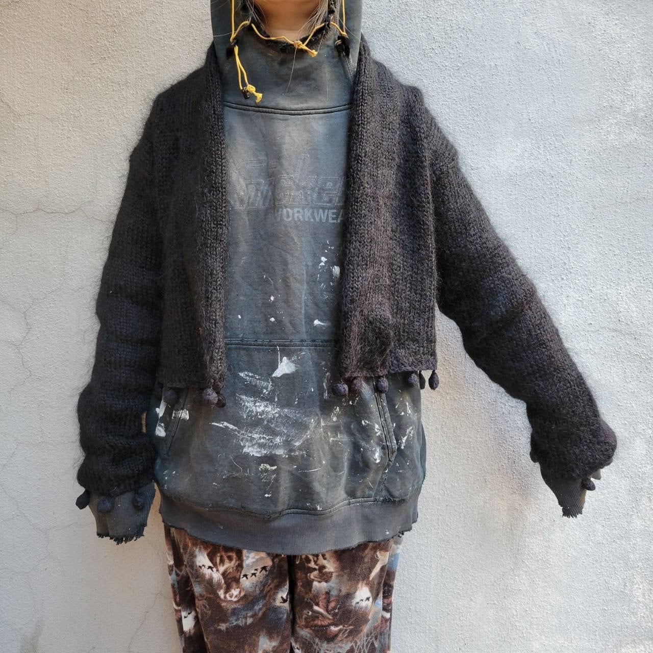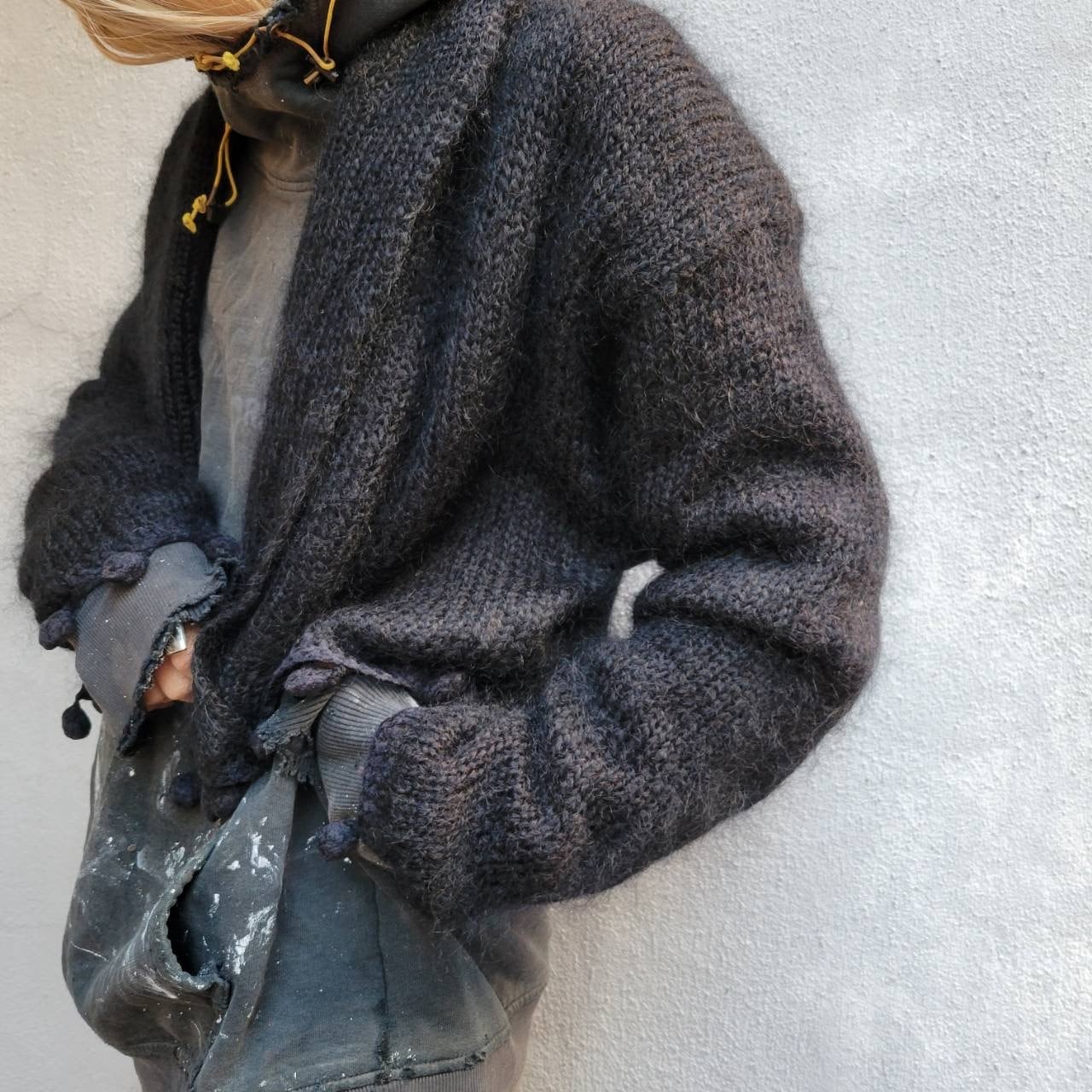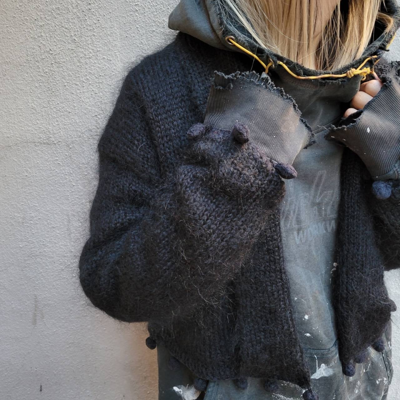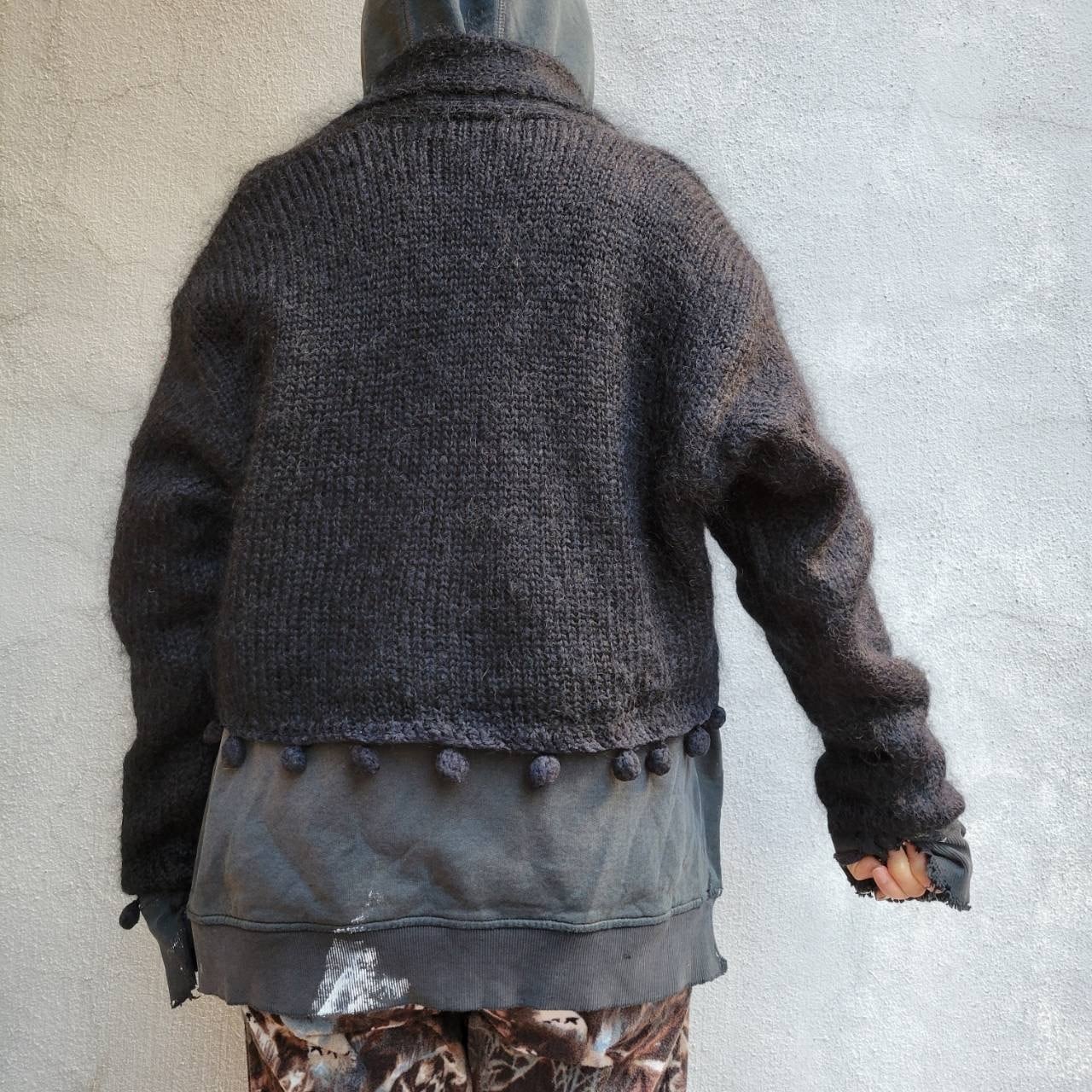 ふわふわとしたモヘアニットの袖口と裾に施されたボンボンが可愛らしさを引き立てます!