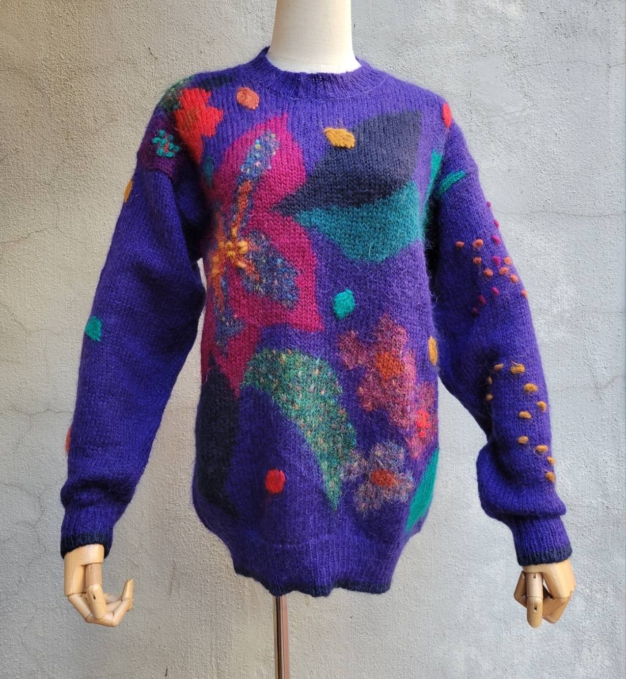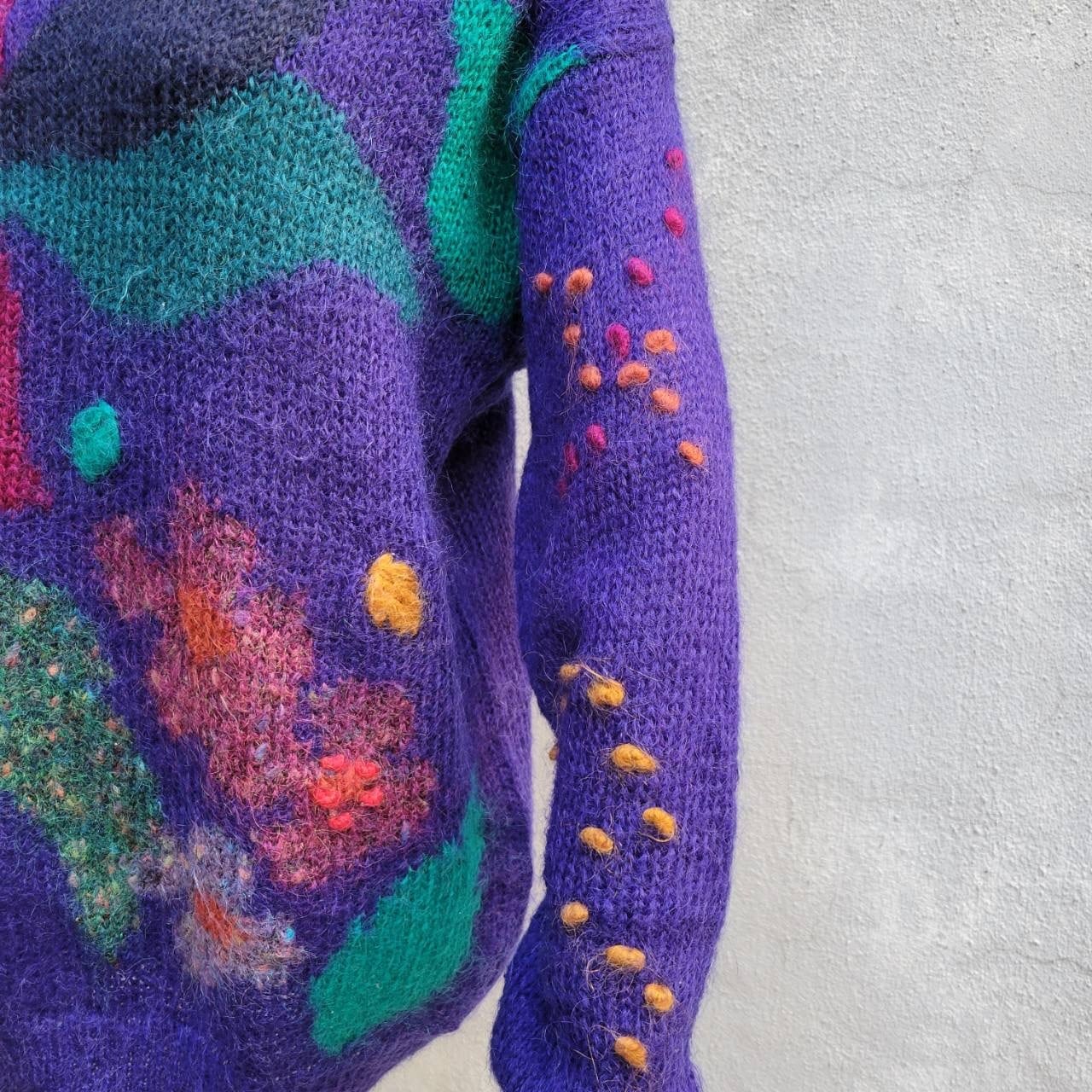 大きなお花柄がアクセントになったふかふかなモヘアニットです