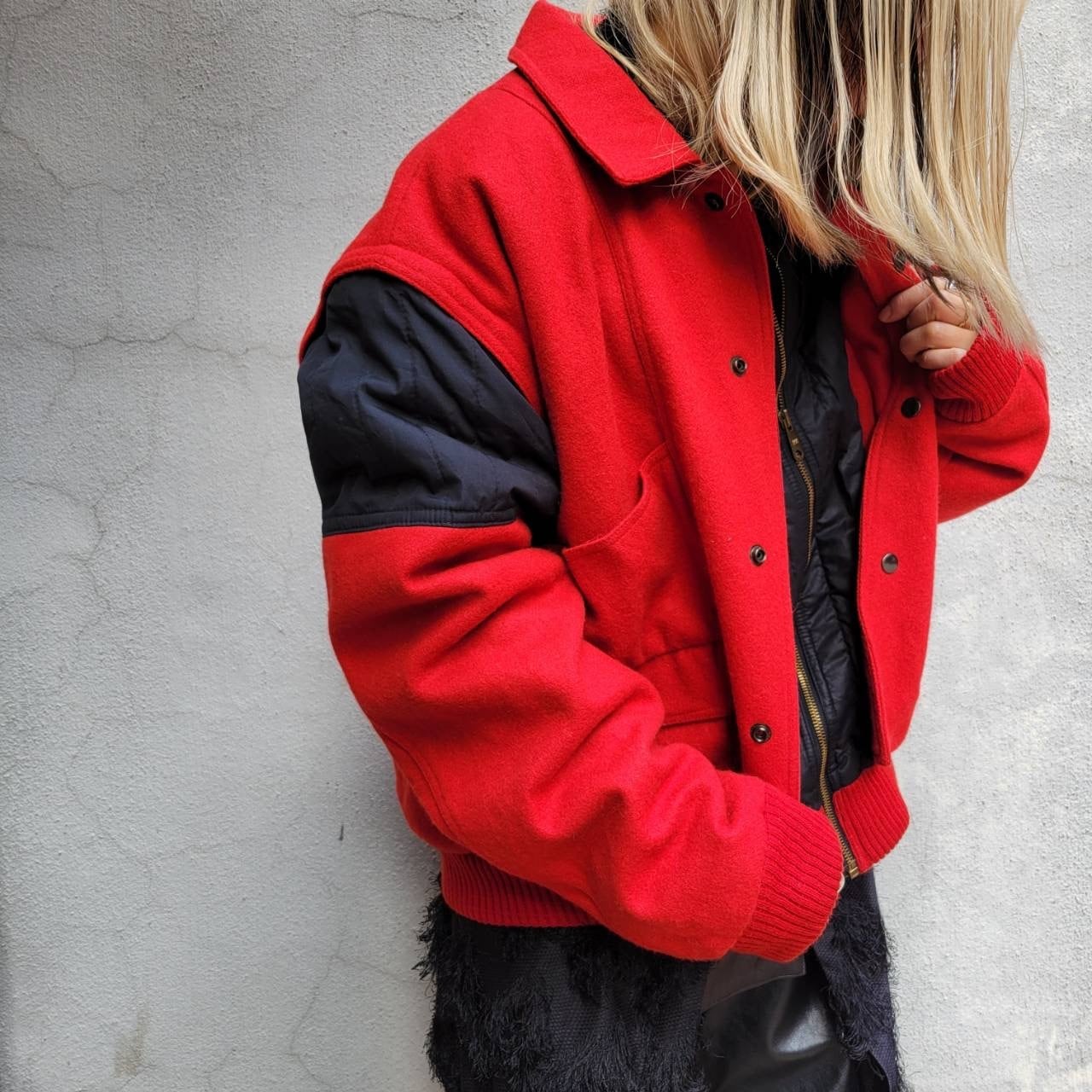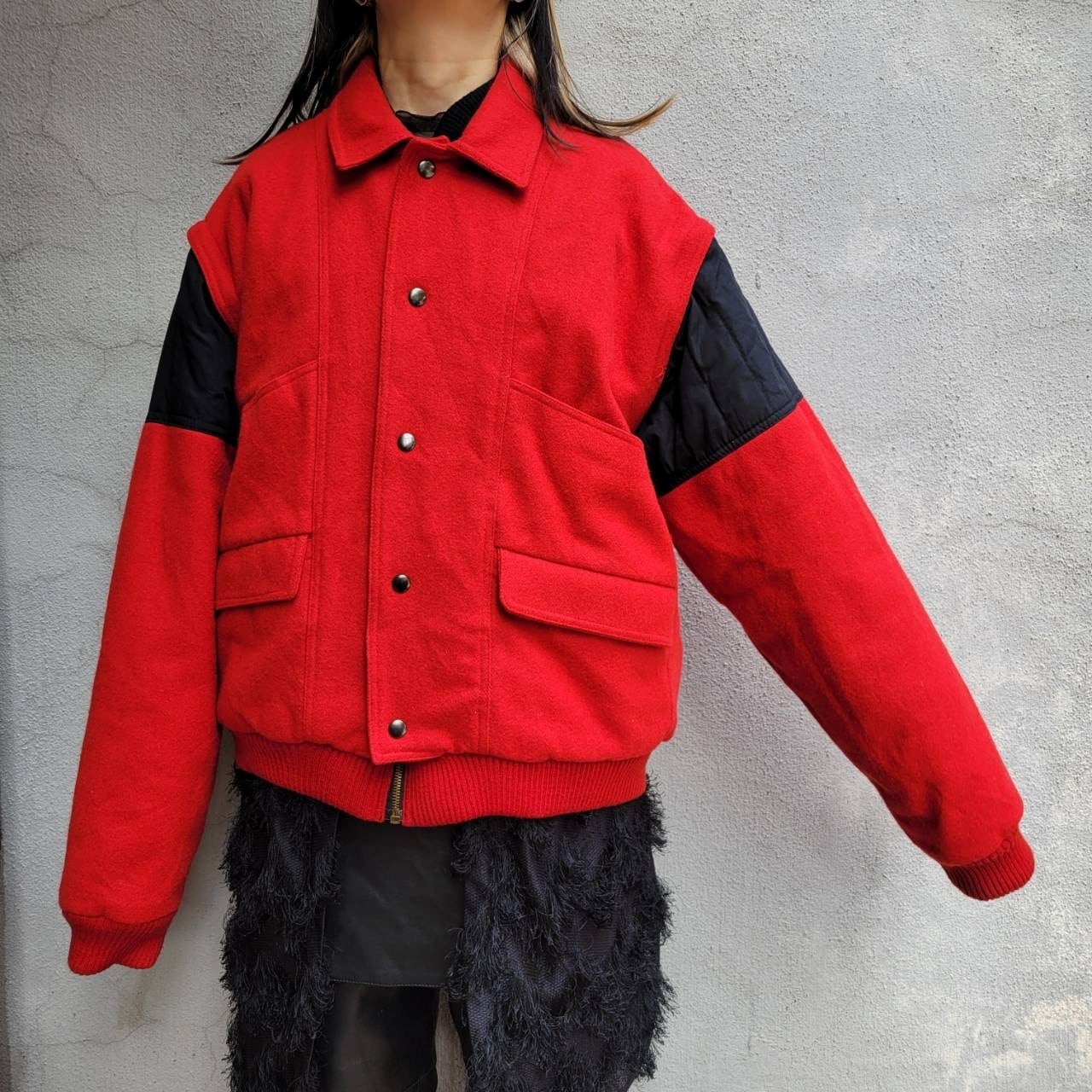 袖取り外し可能なウールブルゾンです