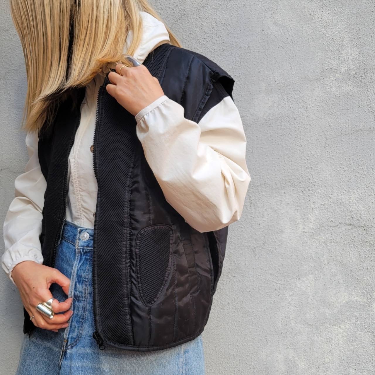 所々メッシュ素材の切り替えデザインが素敵なベストです