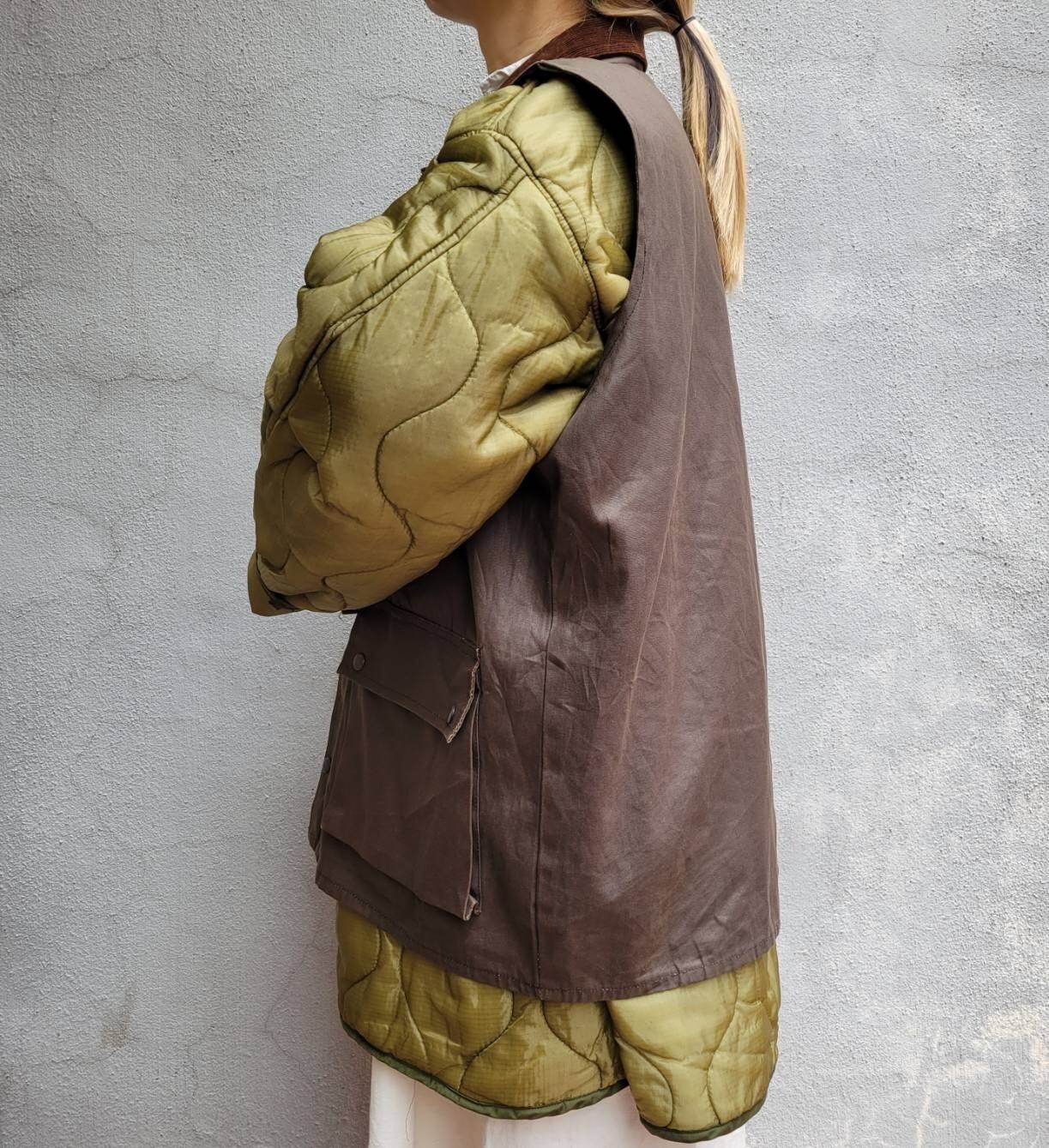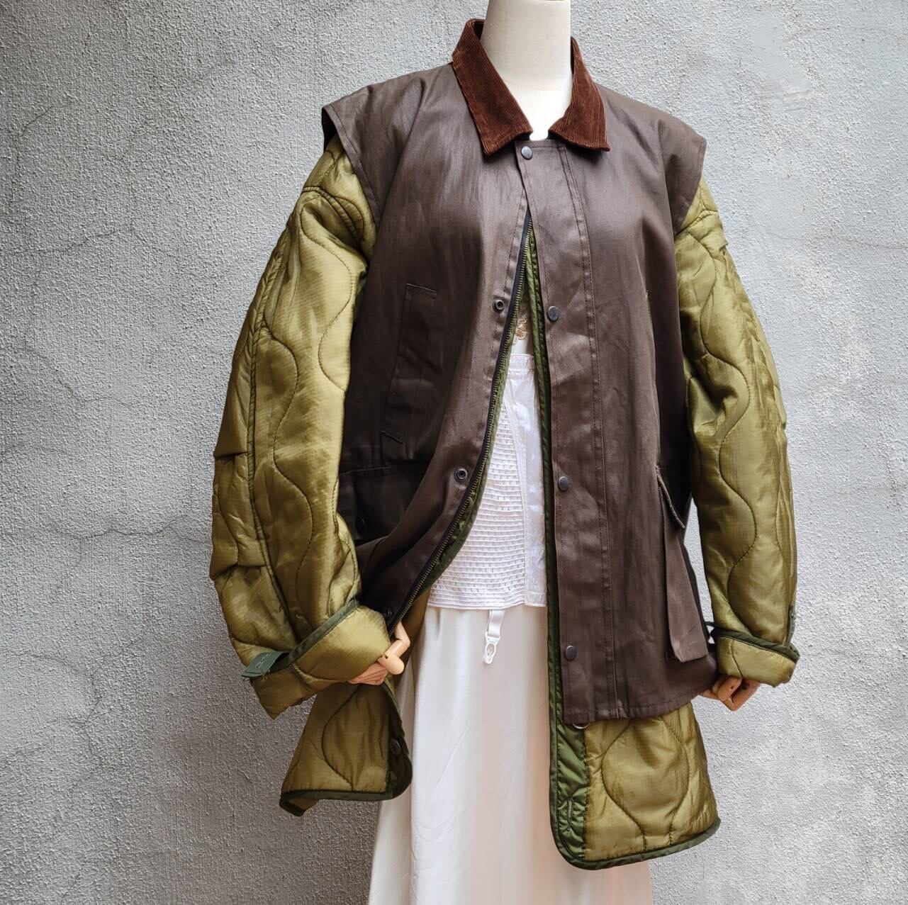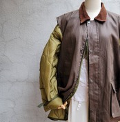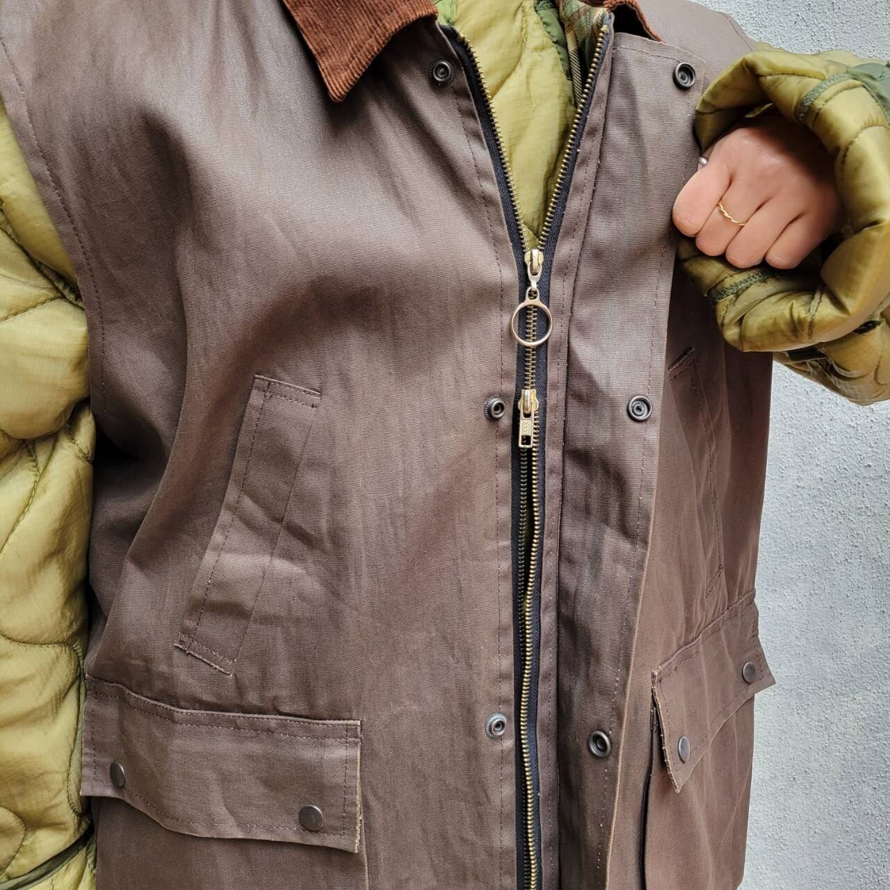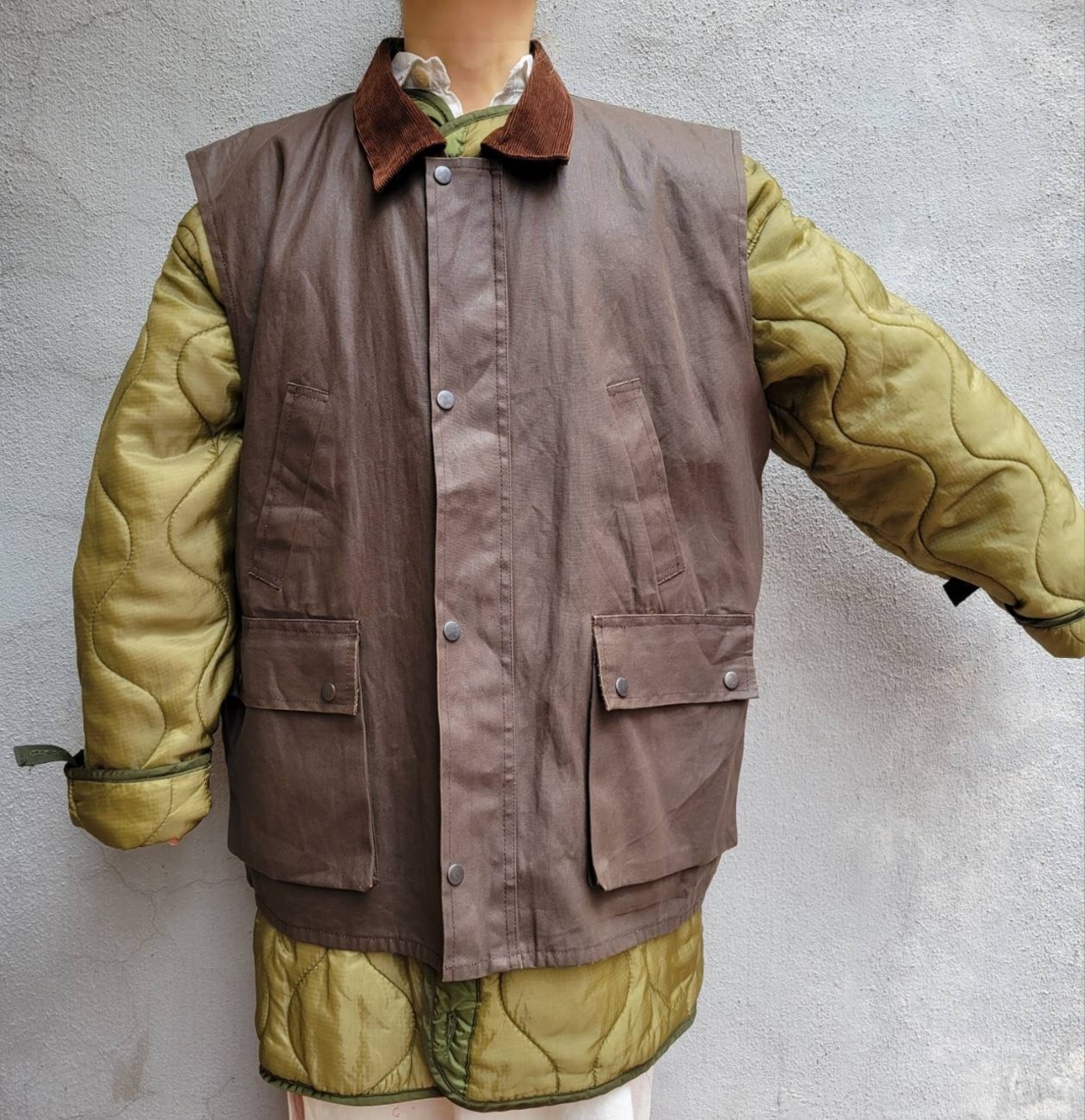 フィールドにも街にも映えるハンティングベストは、コーデュロイの襟が特徴的で、裏地に施されたチェック柄がかわいらしいアクセントになっています!