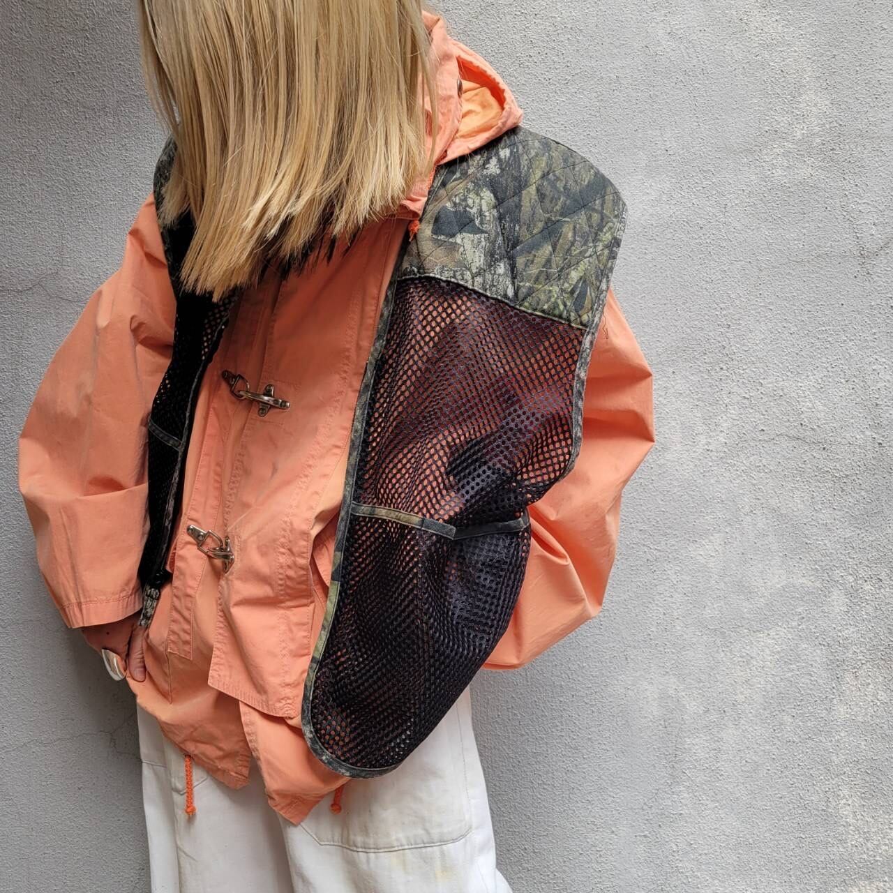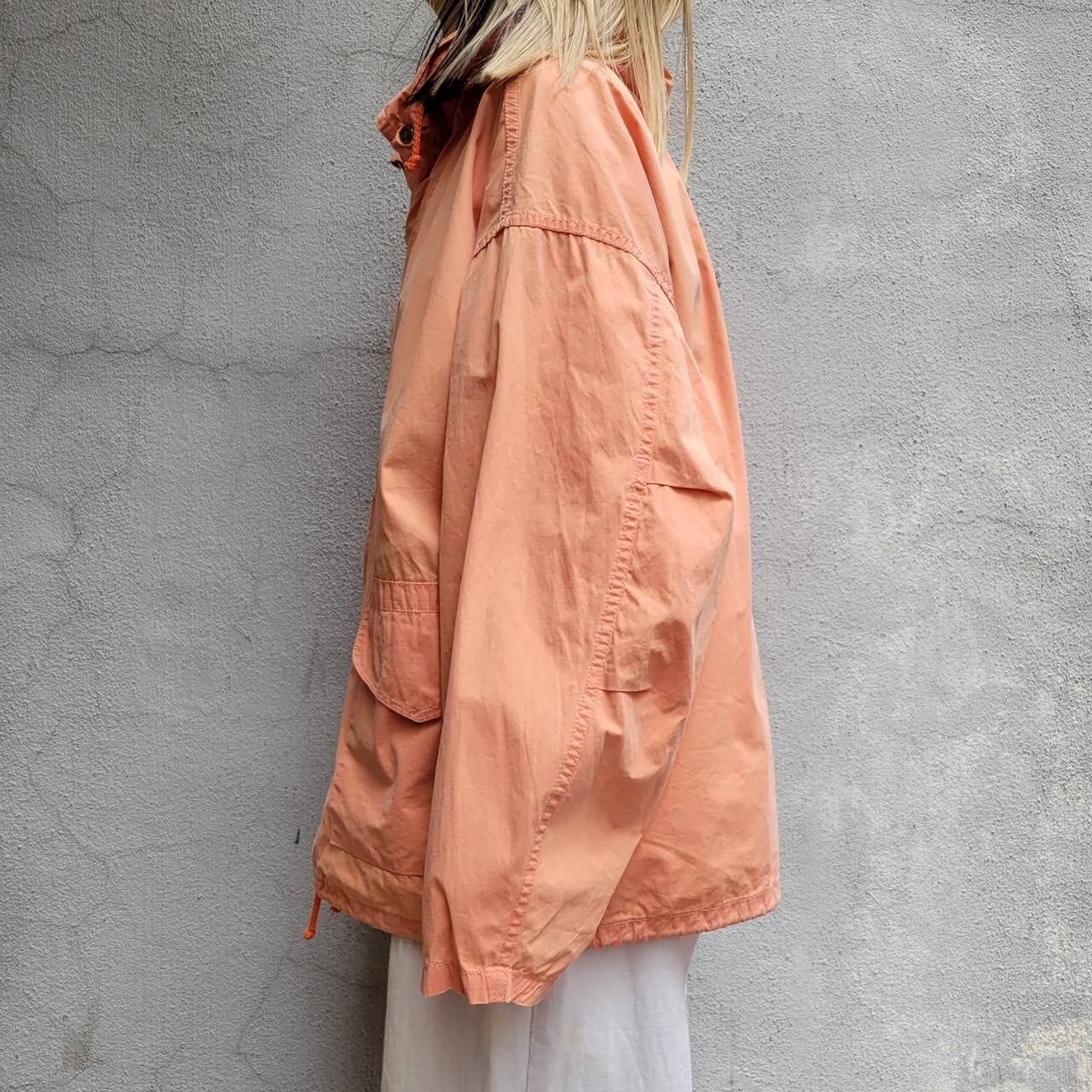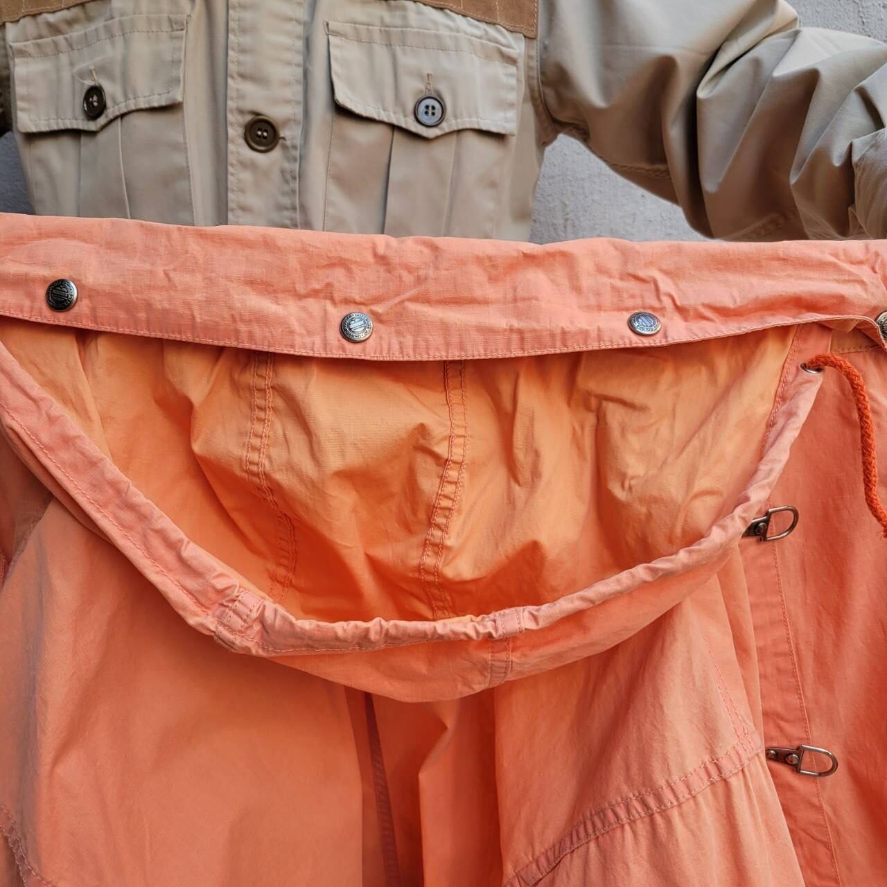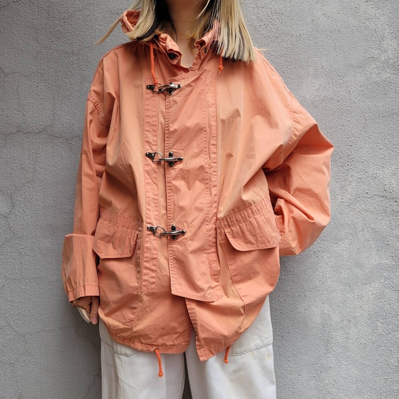 優しいオレンジカラーとフックが特徴的なファイヤーマンジャケット