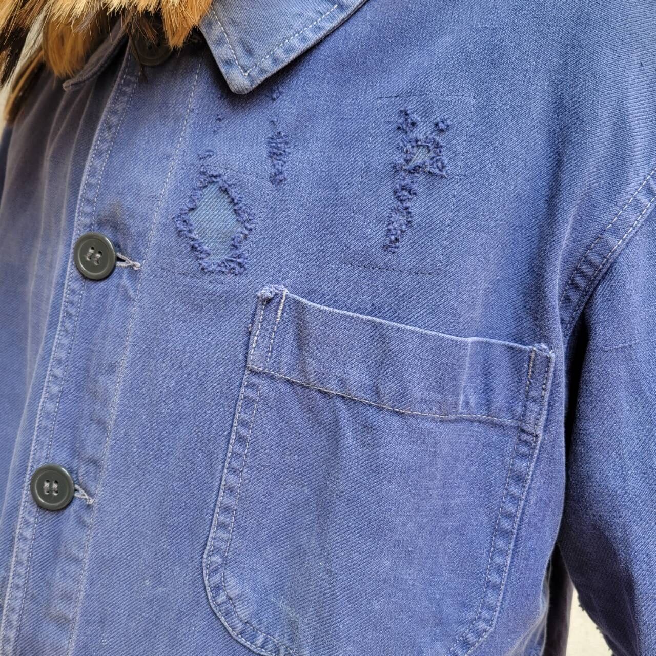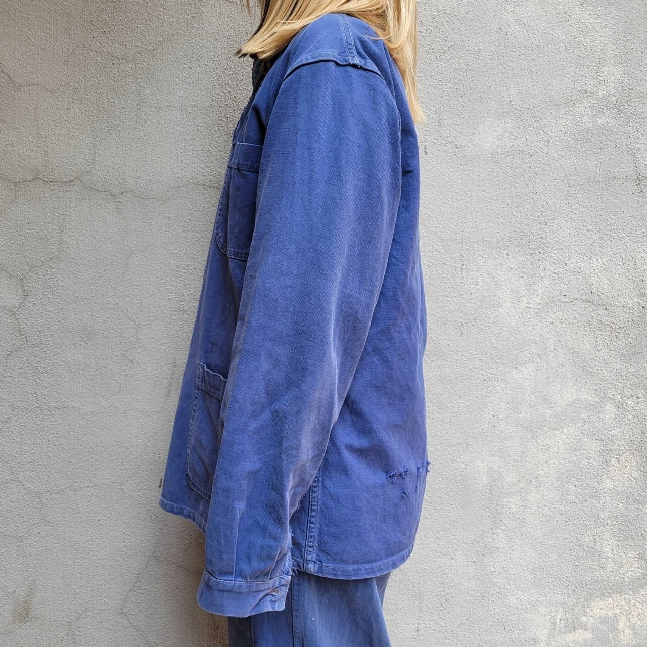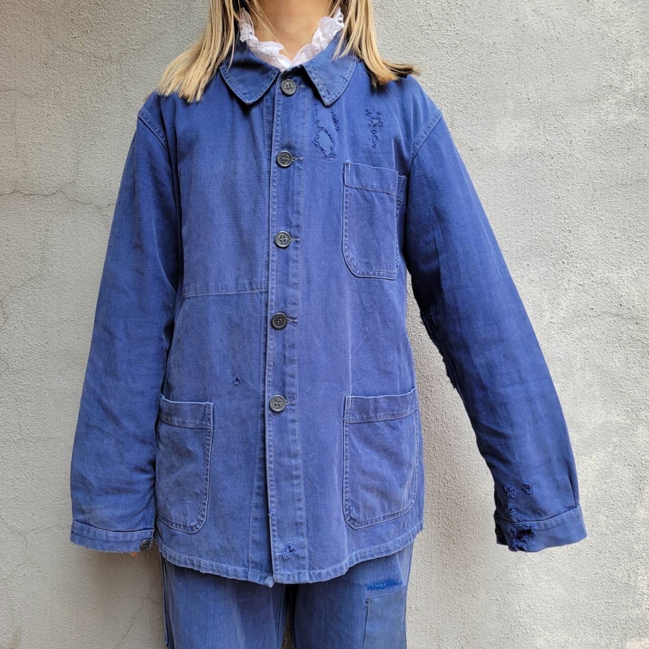 程よいフェード具合と袖口のボロ感が雰囲気を引き立てるクラッシュワークジャケットです。オーバーサイズのデザインで着やすく、カジュアルなスタイルにぴったりの一着です。