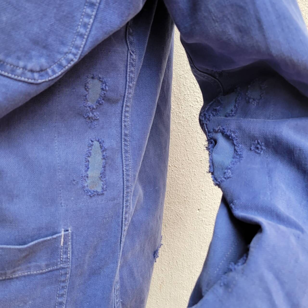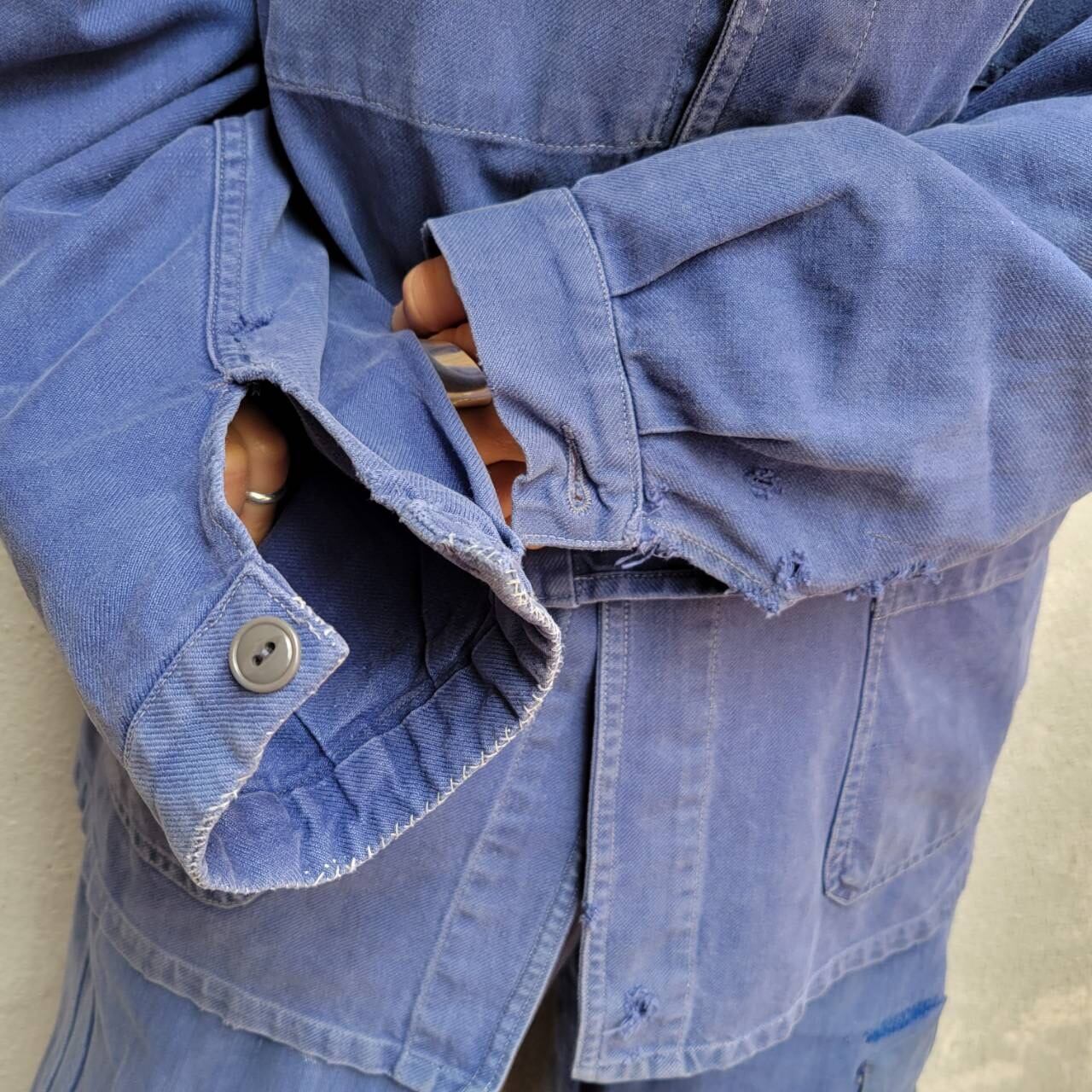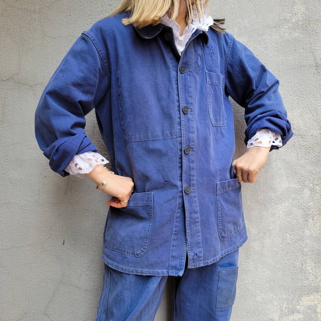 程よいフェード具合と袖口のボロ感が雰囲気を引き立てるクラッシュワークジャケットです。オーバーサイズのデザインで着やすく、カジュアルなスタイルにぴったりの一着です。