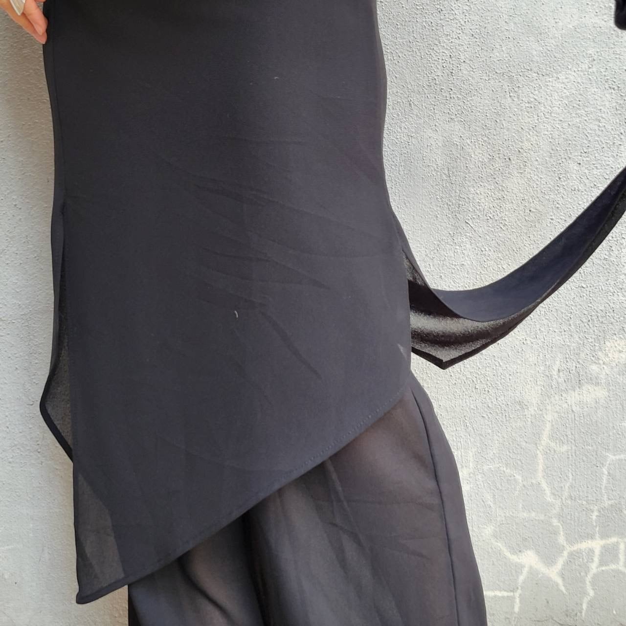 二枚仕立てでアシンメトリーなティアードデザインが素敵なシフォンパンツです
