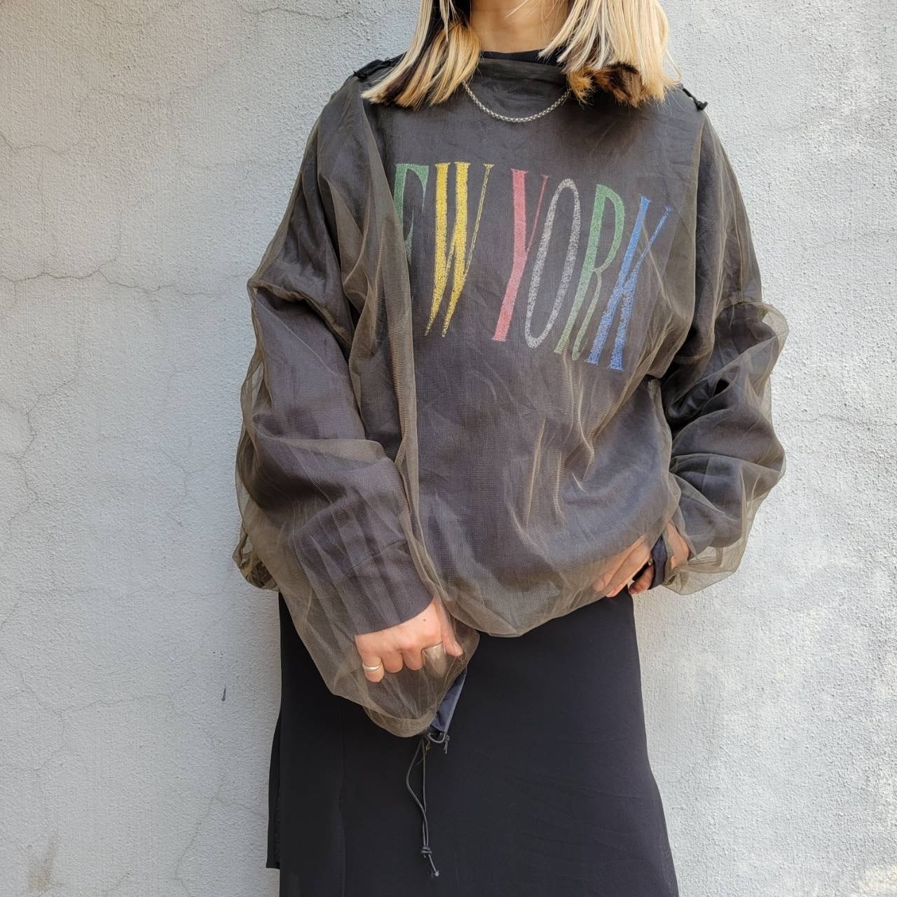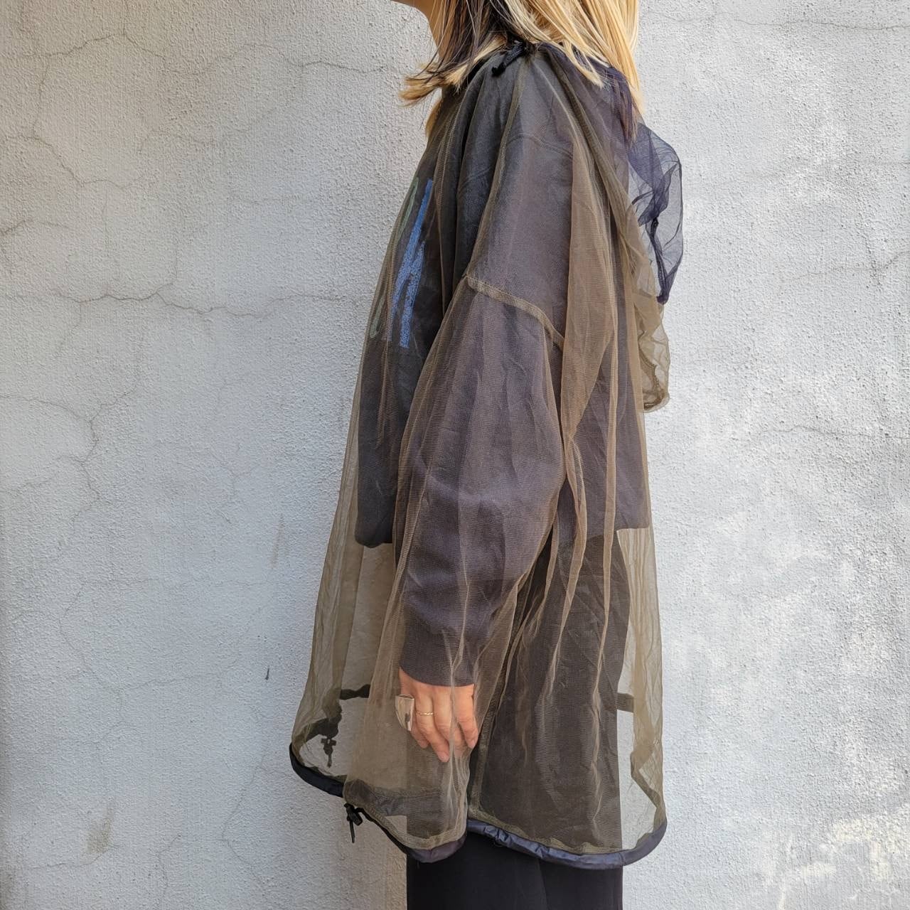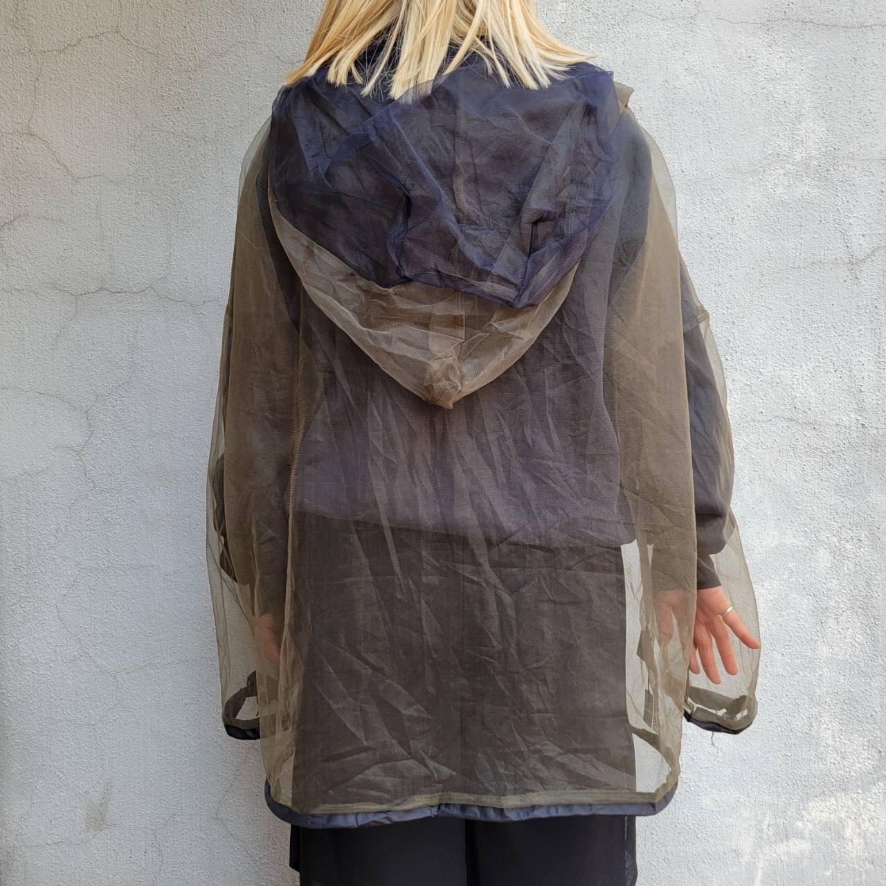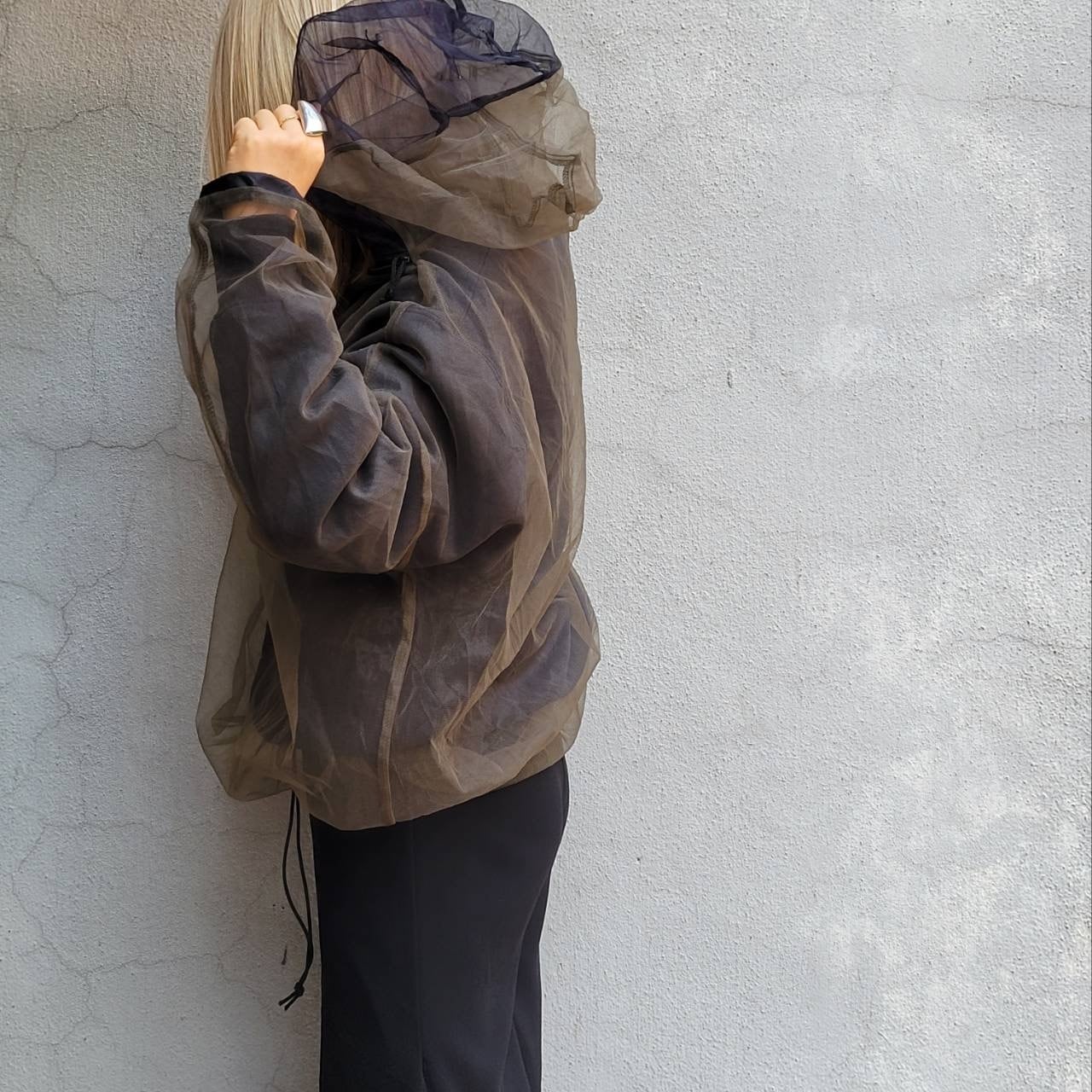 オーバーサイズ、袖口と裾部分にドローコード・フード部分はファスナーで頭部全体を覆えるデザインになっています