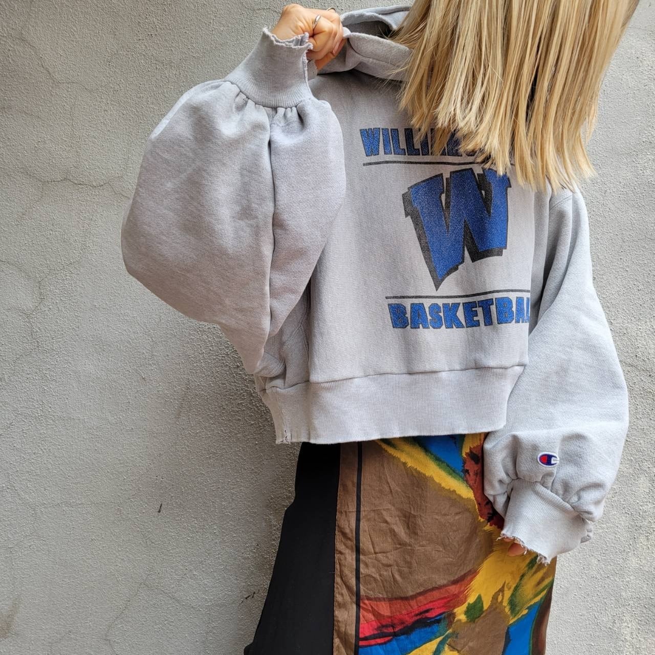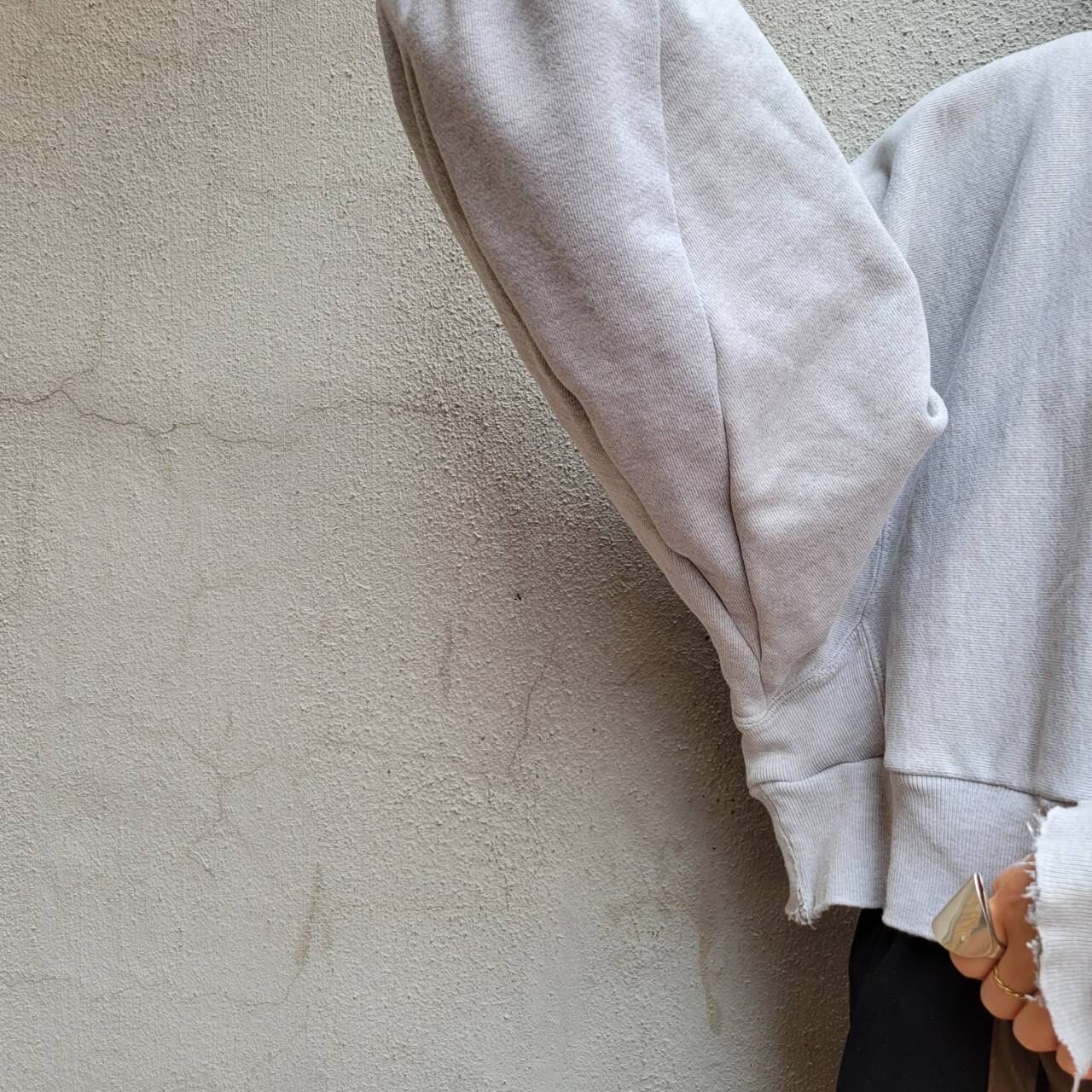 オーバーサイズのリバースウィーブスウェットをバルーンスリーブとショート丈にしました