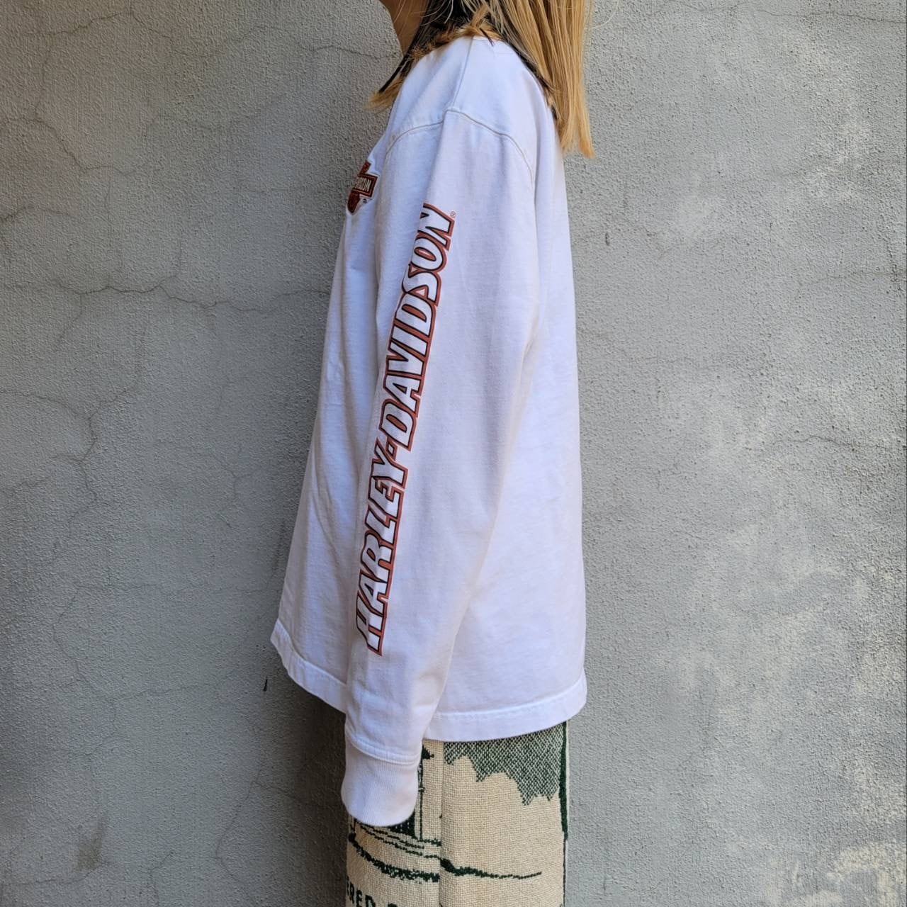 両腕にロゴが入った地厚めなロングスリーブシャツです