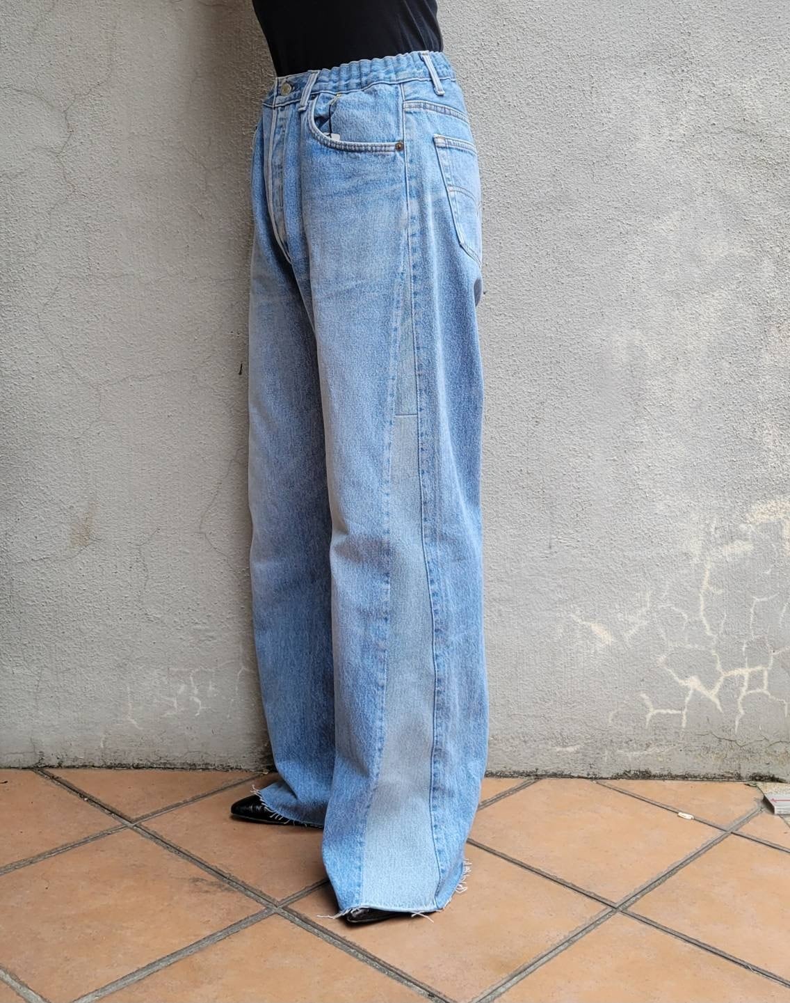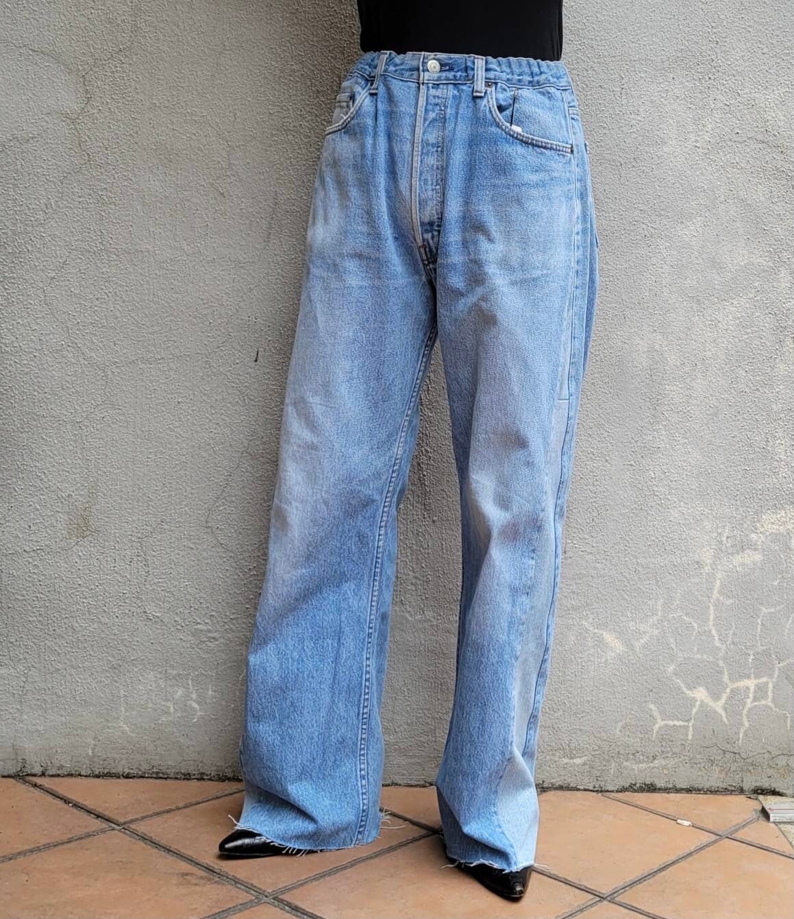 オーバーサイズのデニムパンツ、ウエストをゴムにしました