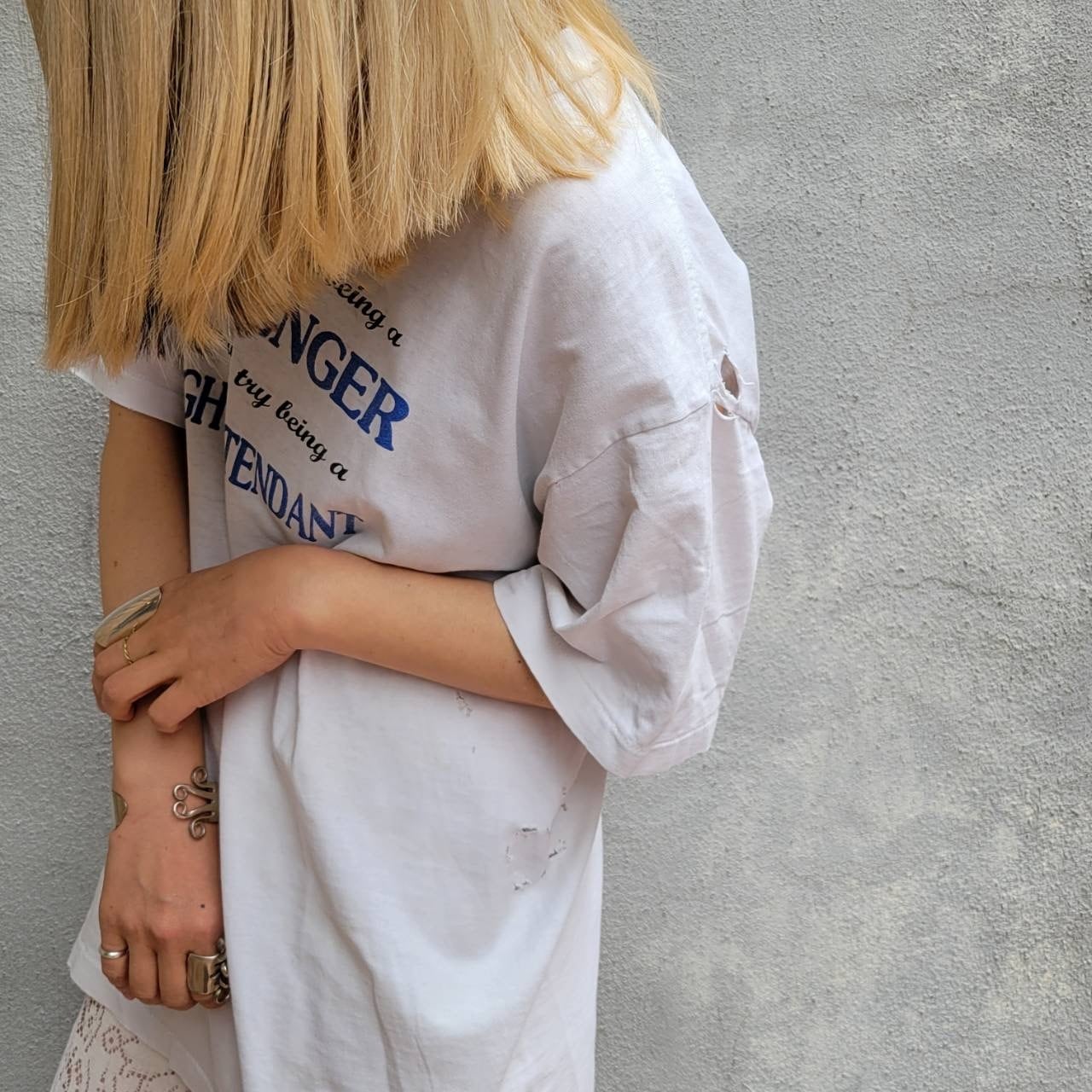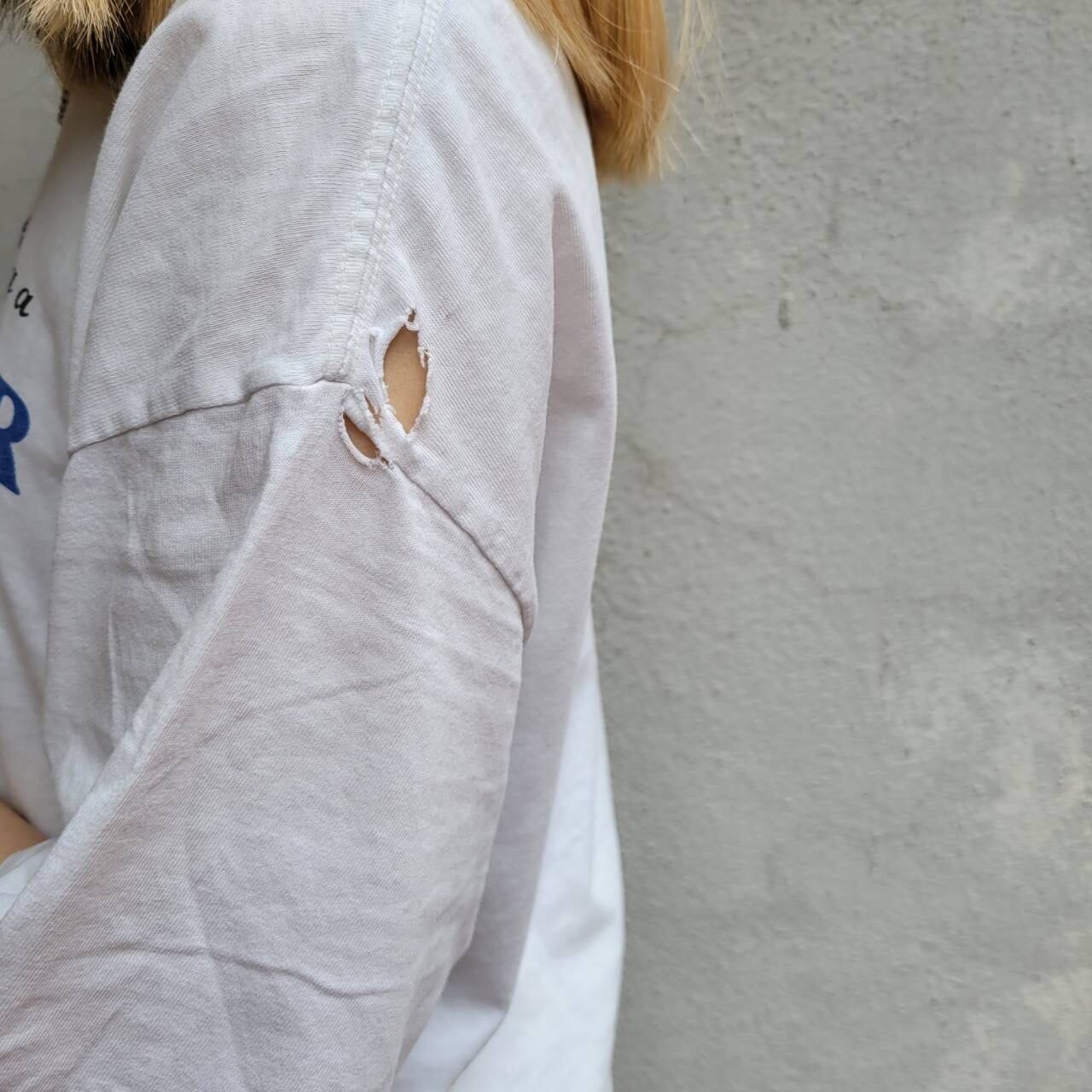 程よく着込まれた柔らかい生地感とクラッシュ箇所が特徴的なtシャツです