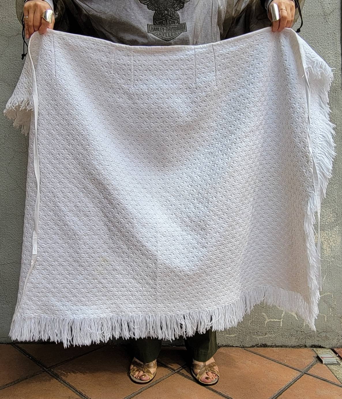 しっかりした生地感とフリンジが特徴的です