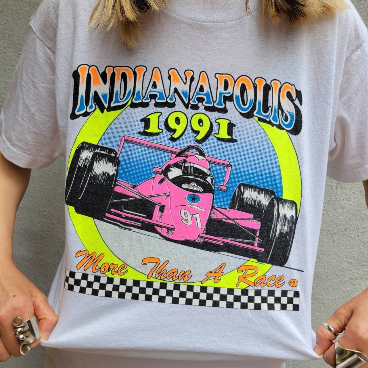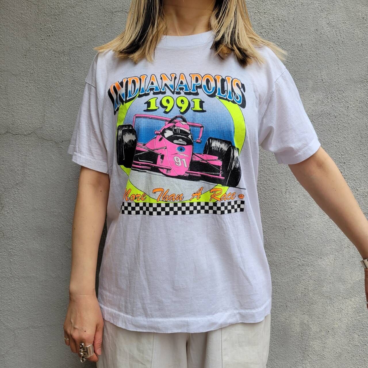 90年代インディアナポリスで行われるモーターレースのtシャツ