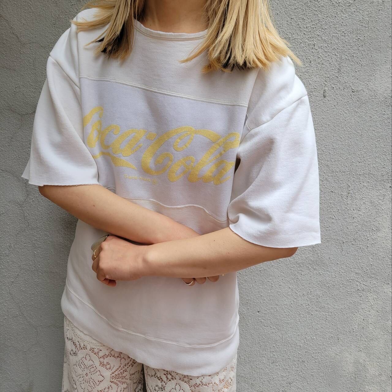 コカコーラロゴが特徴的なスウェットの首元と袖がカットされています