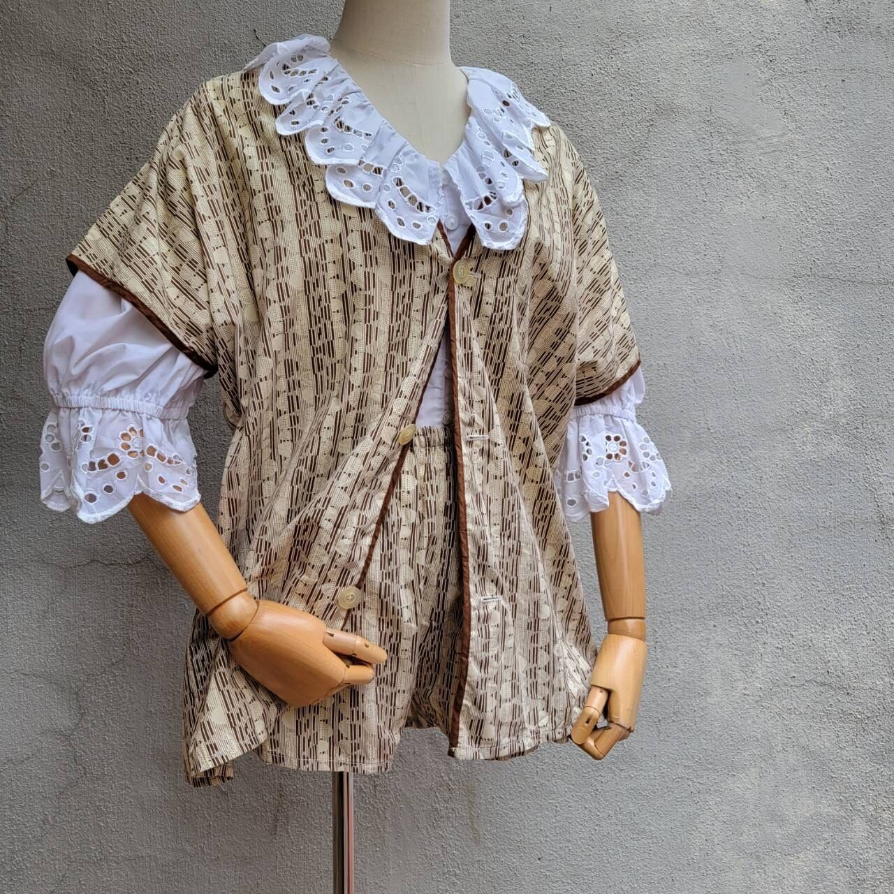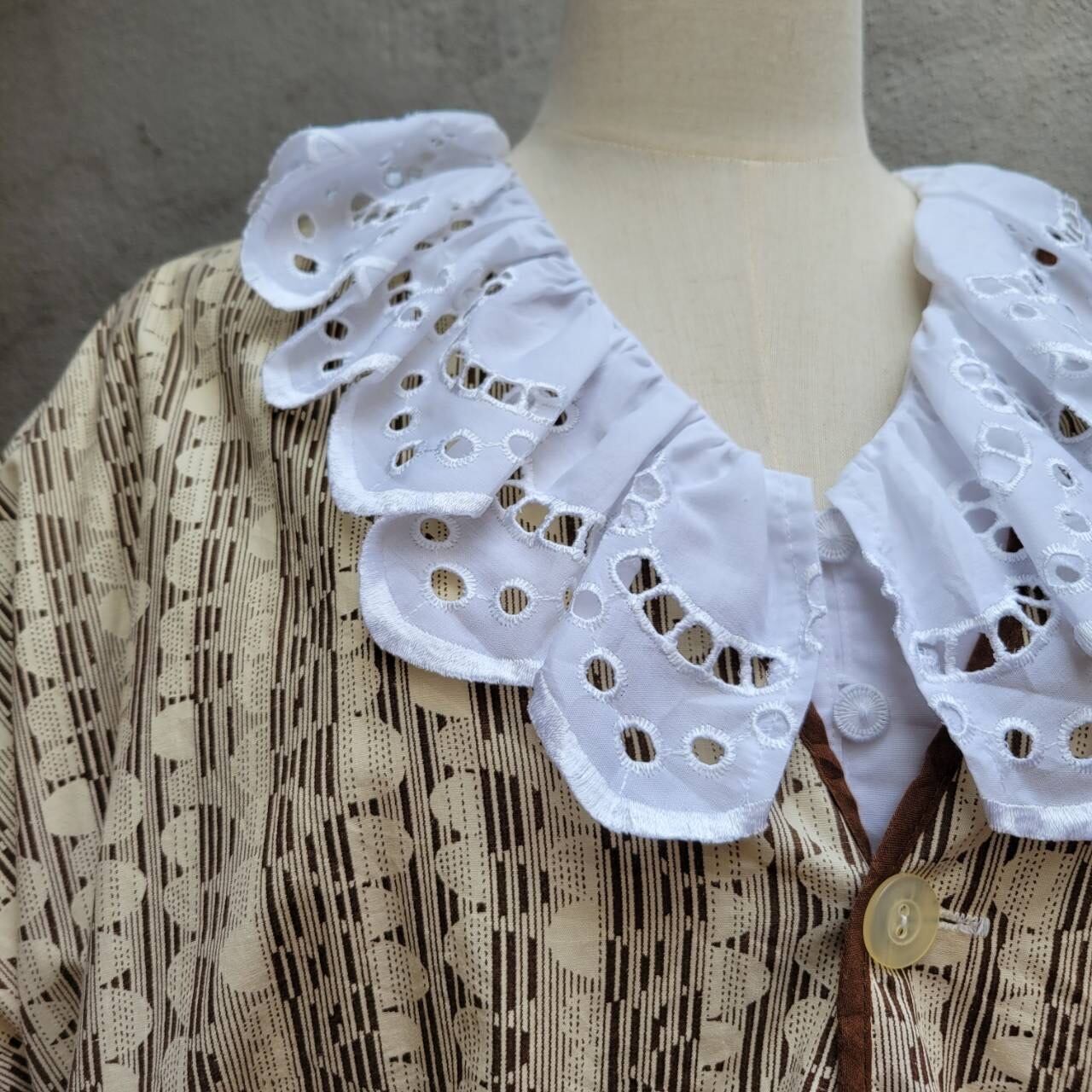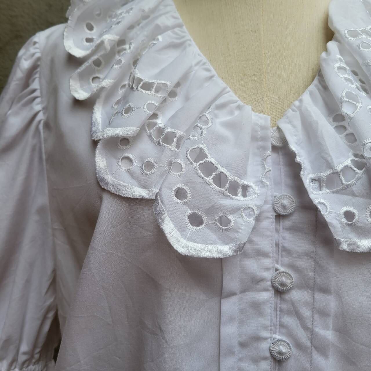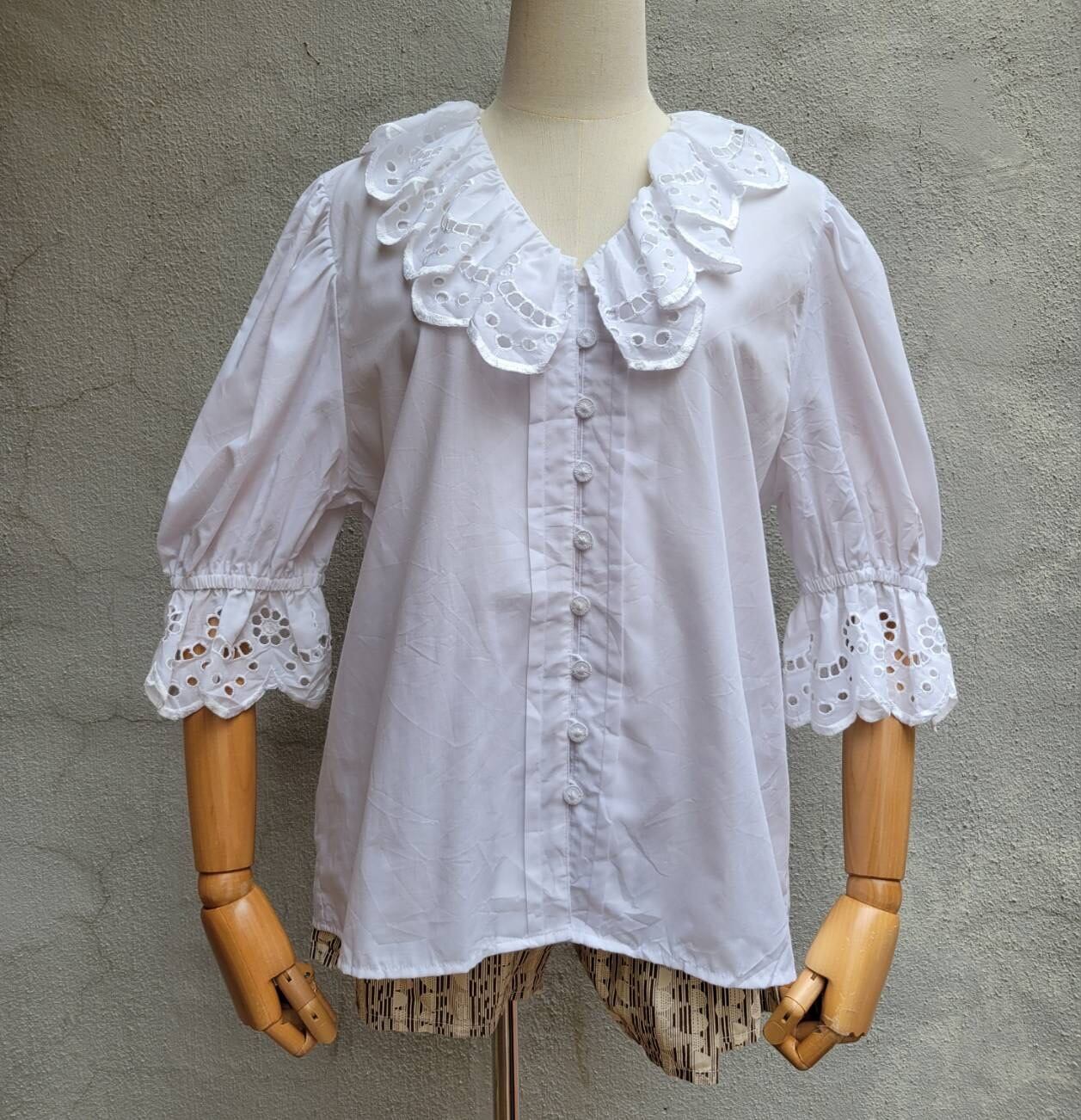 大きな襟が特徴的なフリルブラウスです