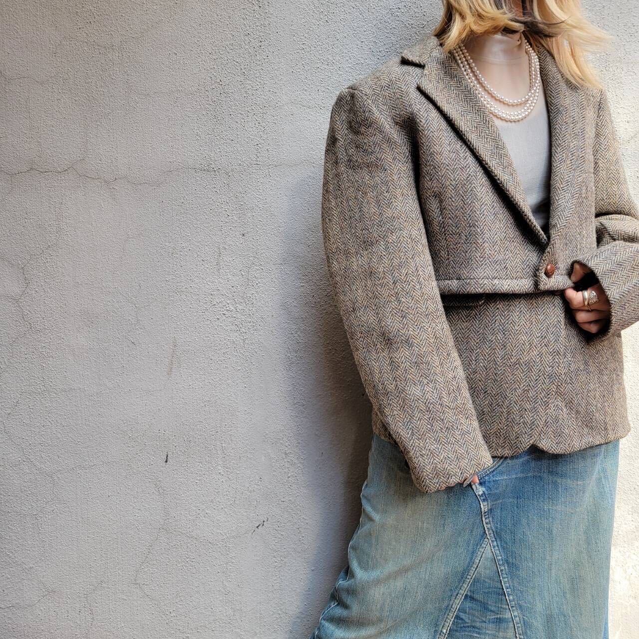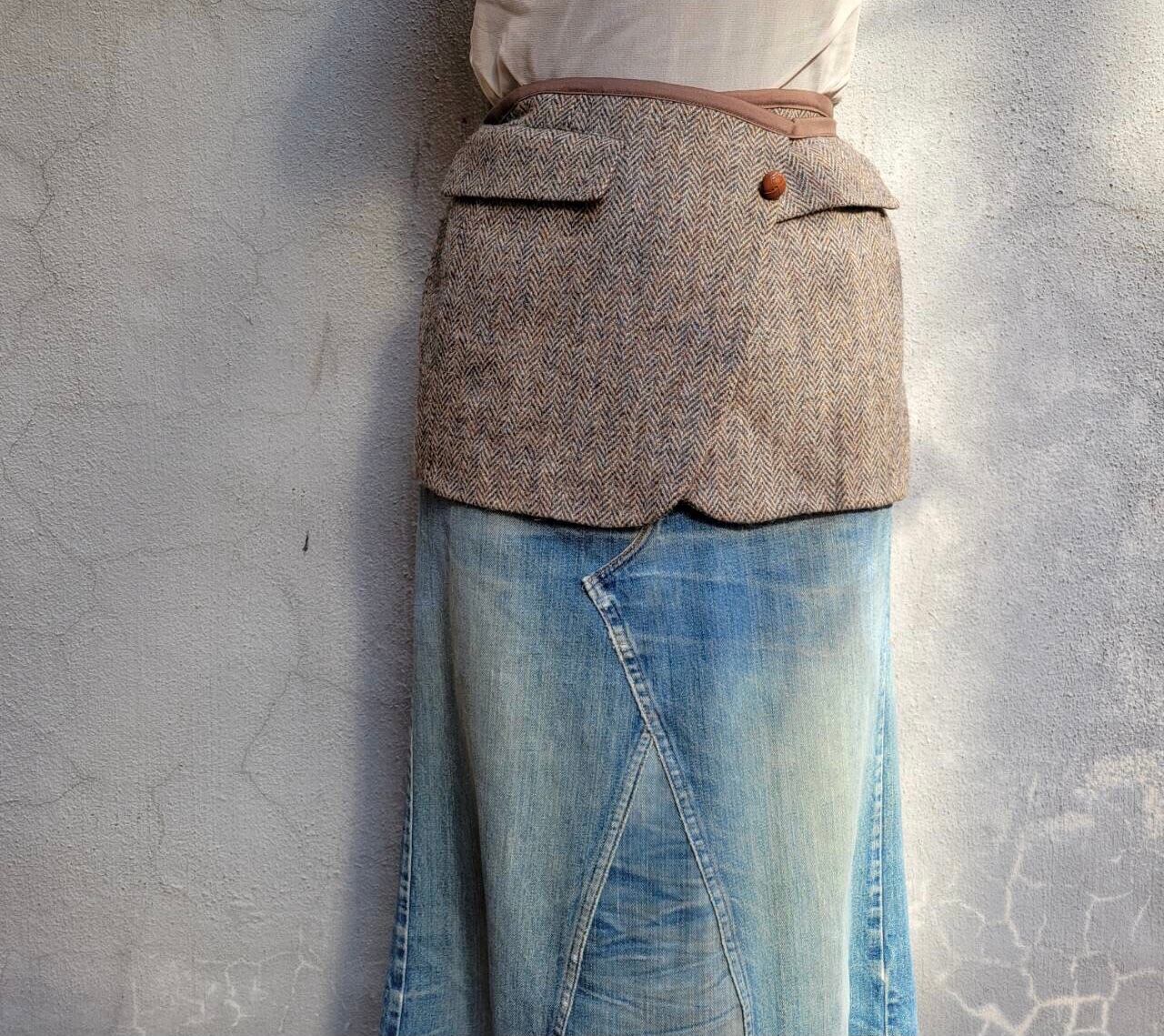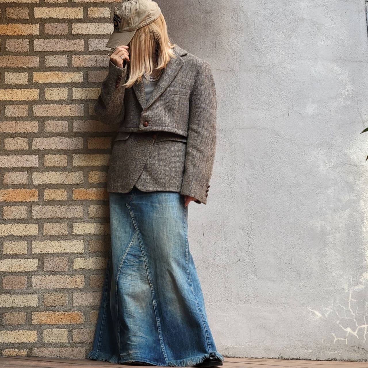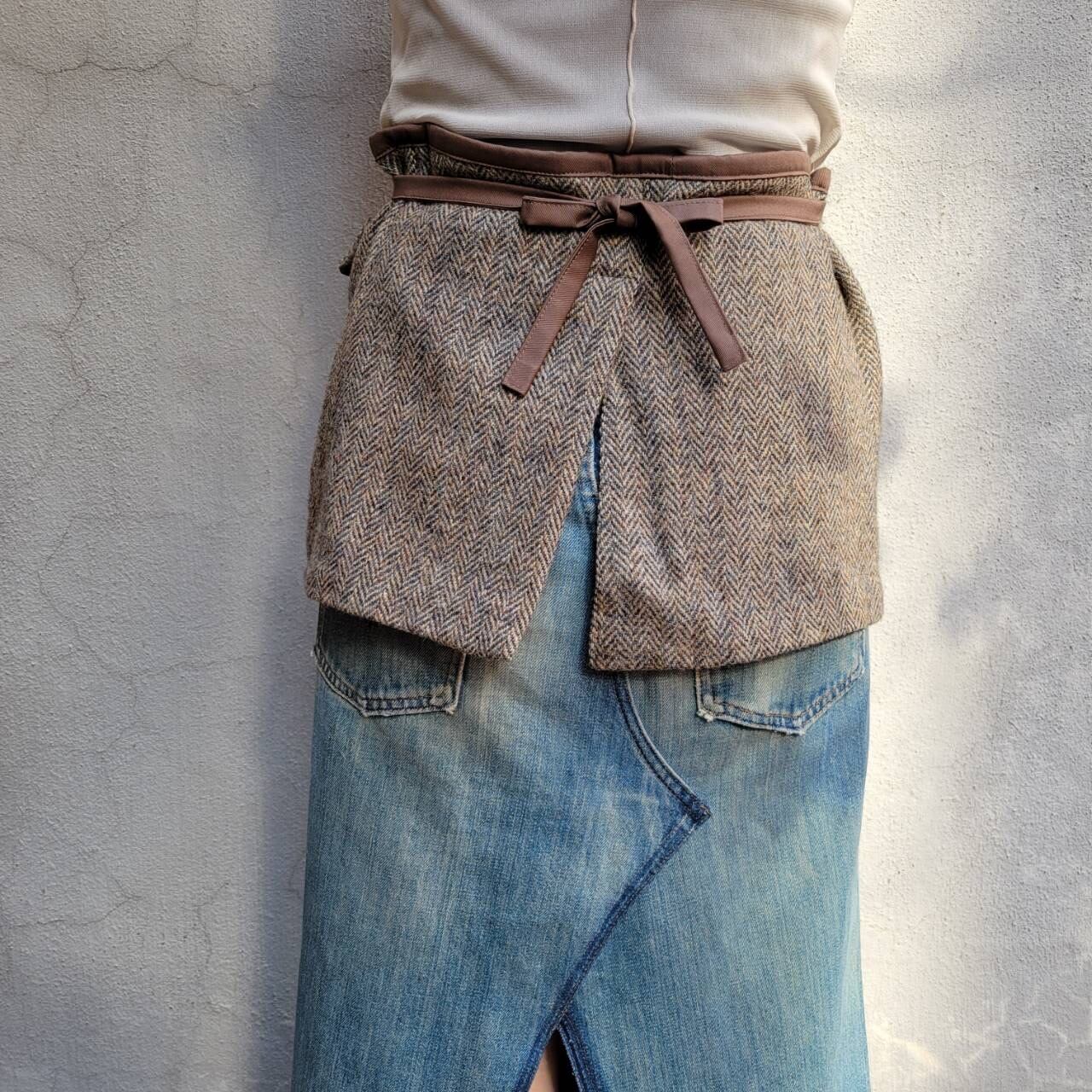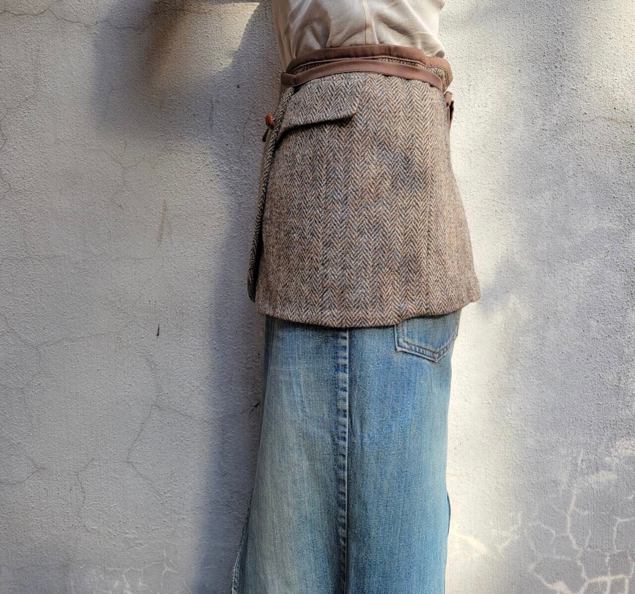 ハリスツィードジャケットのウエスト部分を巻スカートしました