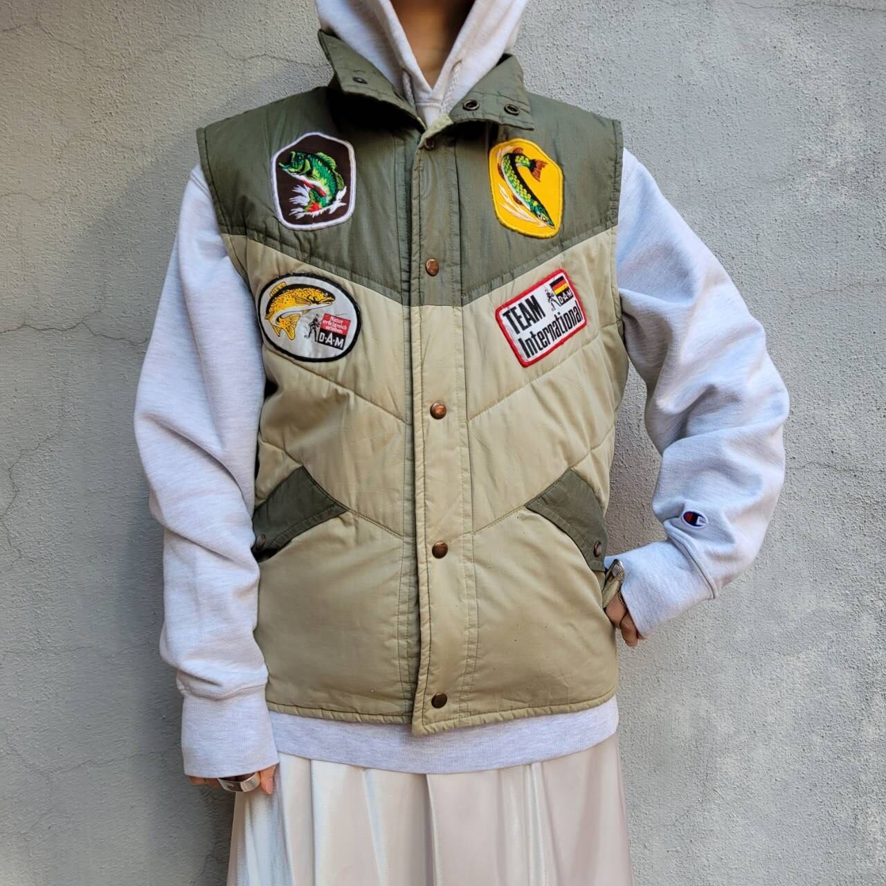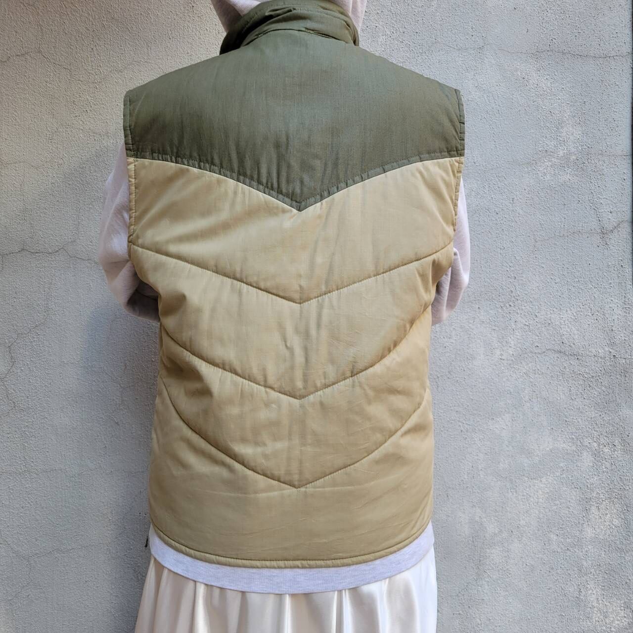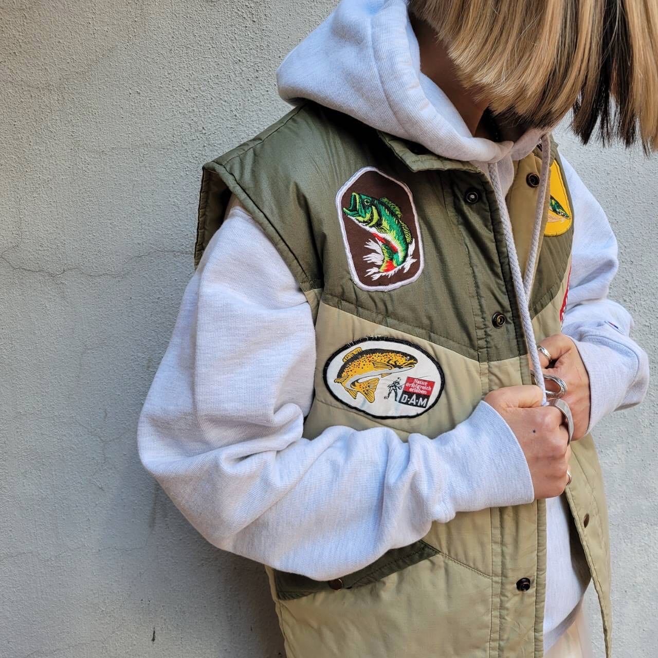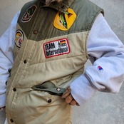 ツートンカラーとワッペンが可愛い軽めの中綿ベストです